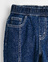 세로 레터링과 스티치 디테일이돋보이는 풀온 데님 팬츠.