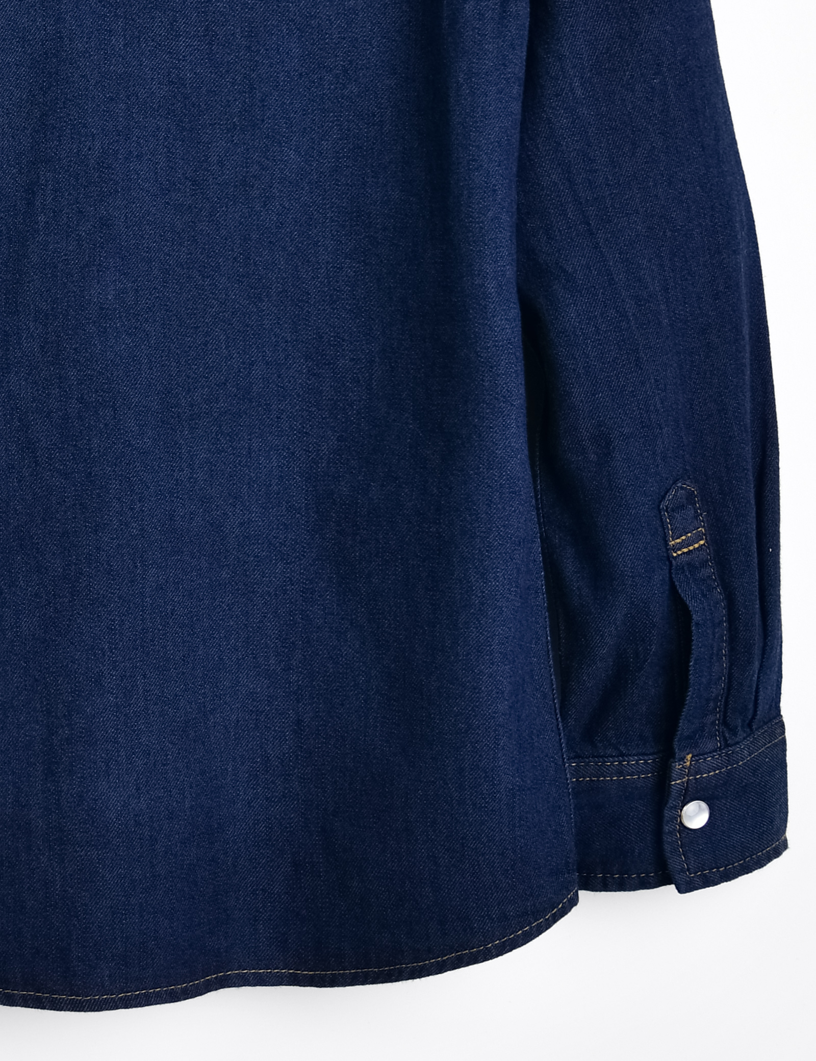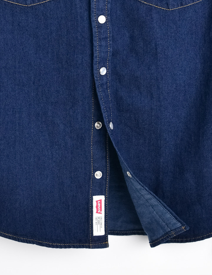 메탈 버튼이 있는 데님 소재의 웨스턴 셔츠.