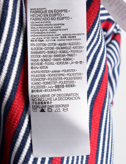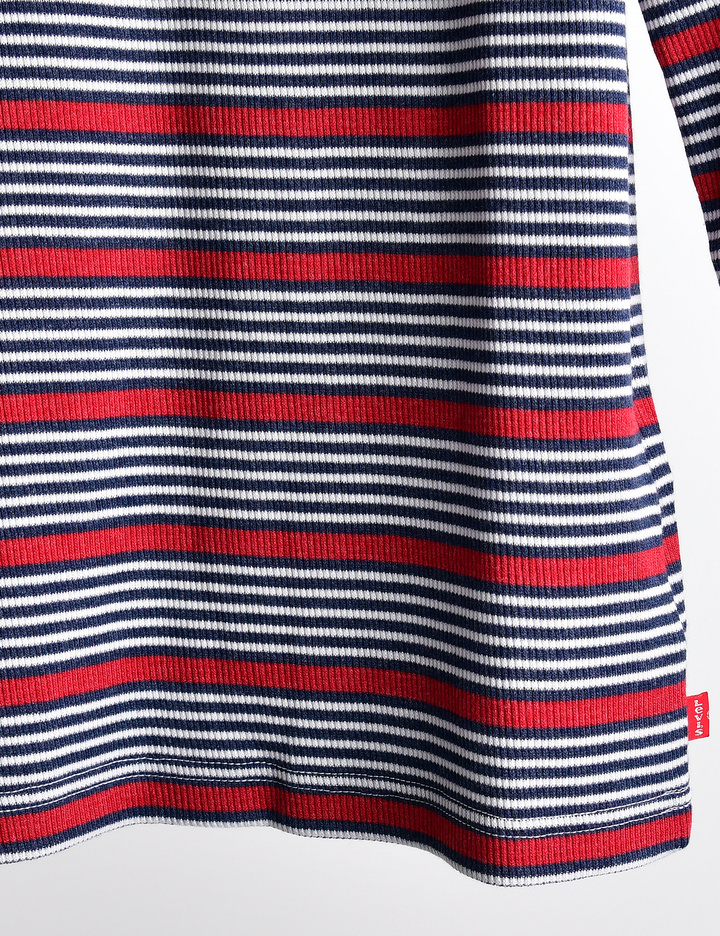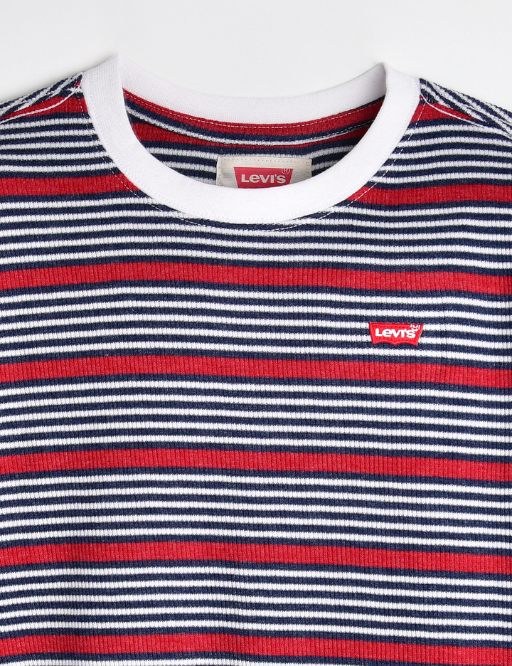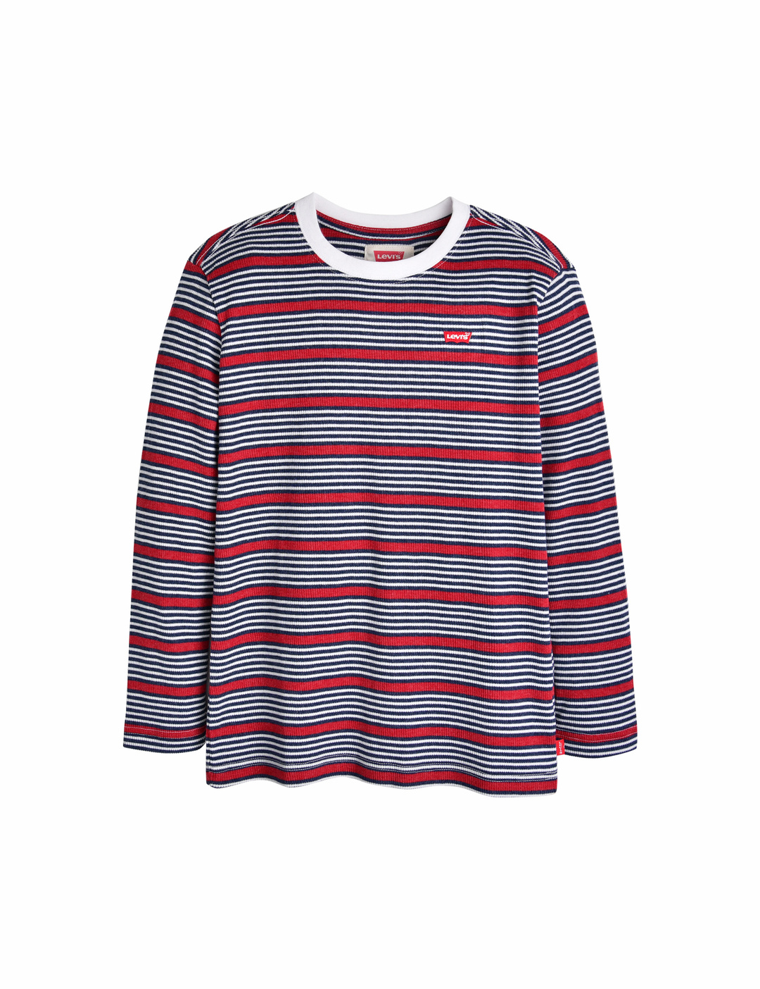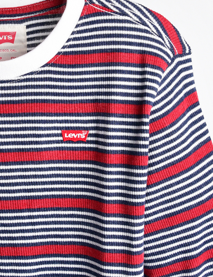 가슴에 스몰 배트윙 로고가 프린트되어 있는 스트라이프 패턴의긴팔 티셔츠