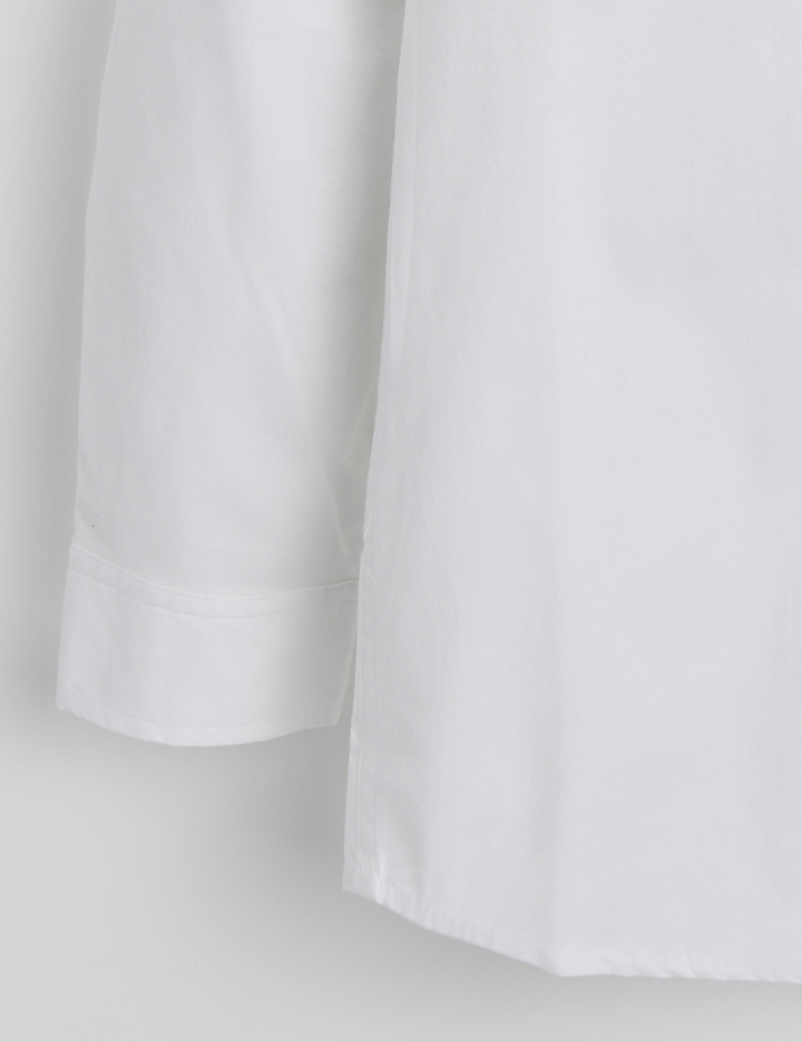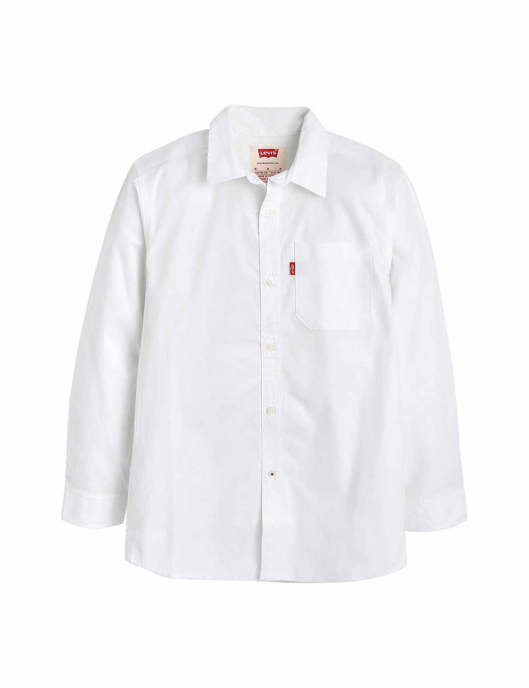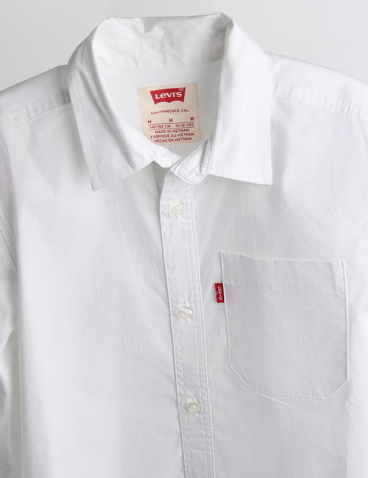 왼쪽 포켓에 리바이스 레드탭이 돋보이는 클래식한 화이트 셔츠입니다.