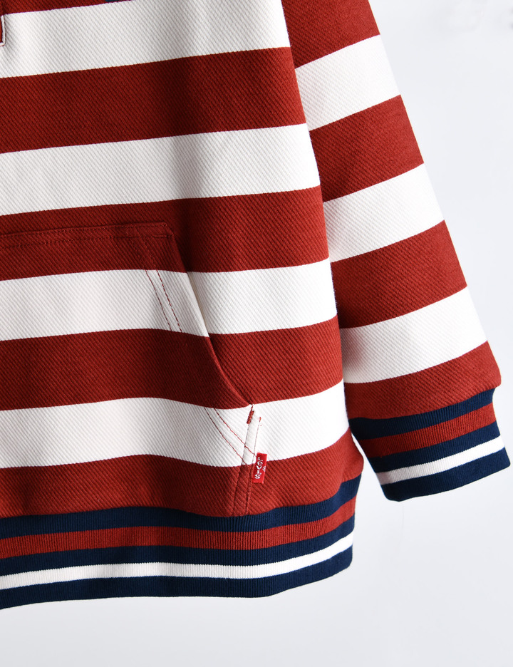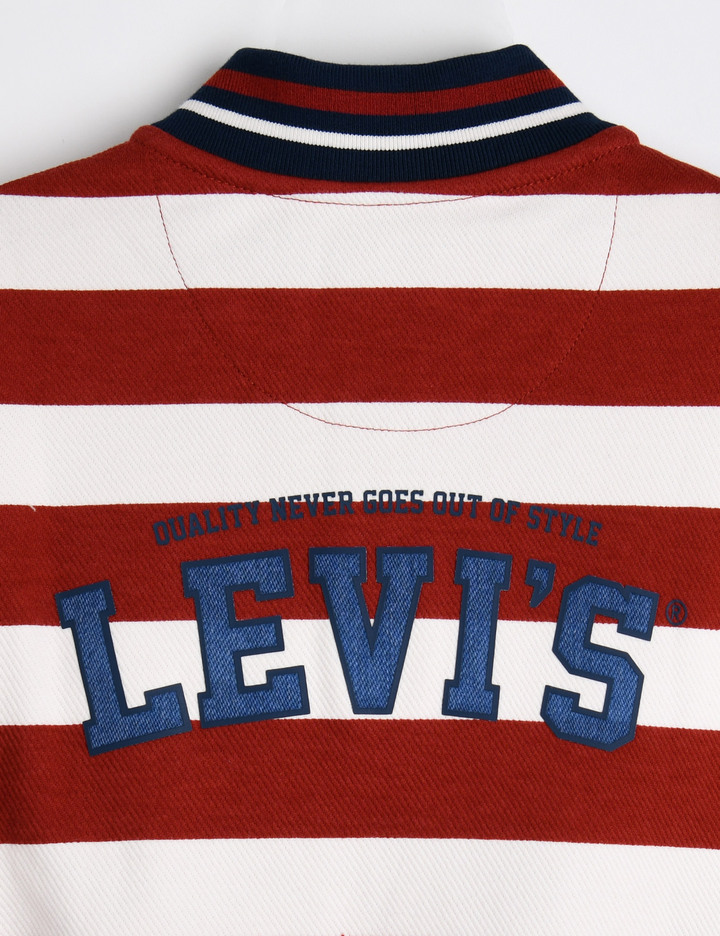 • 레드 스트라이프 패턴에 리바이스 로고가 돋보이는 스타일