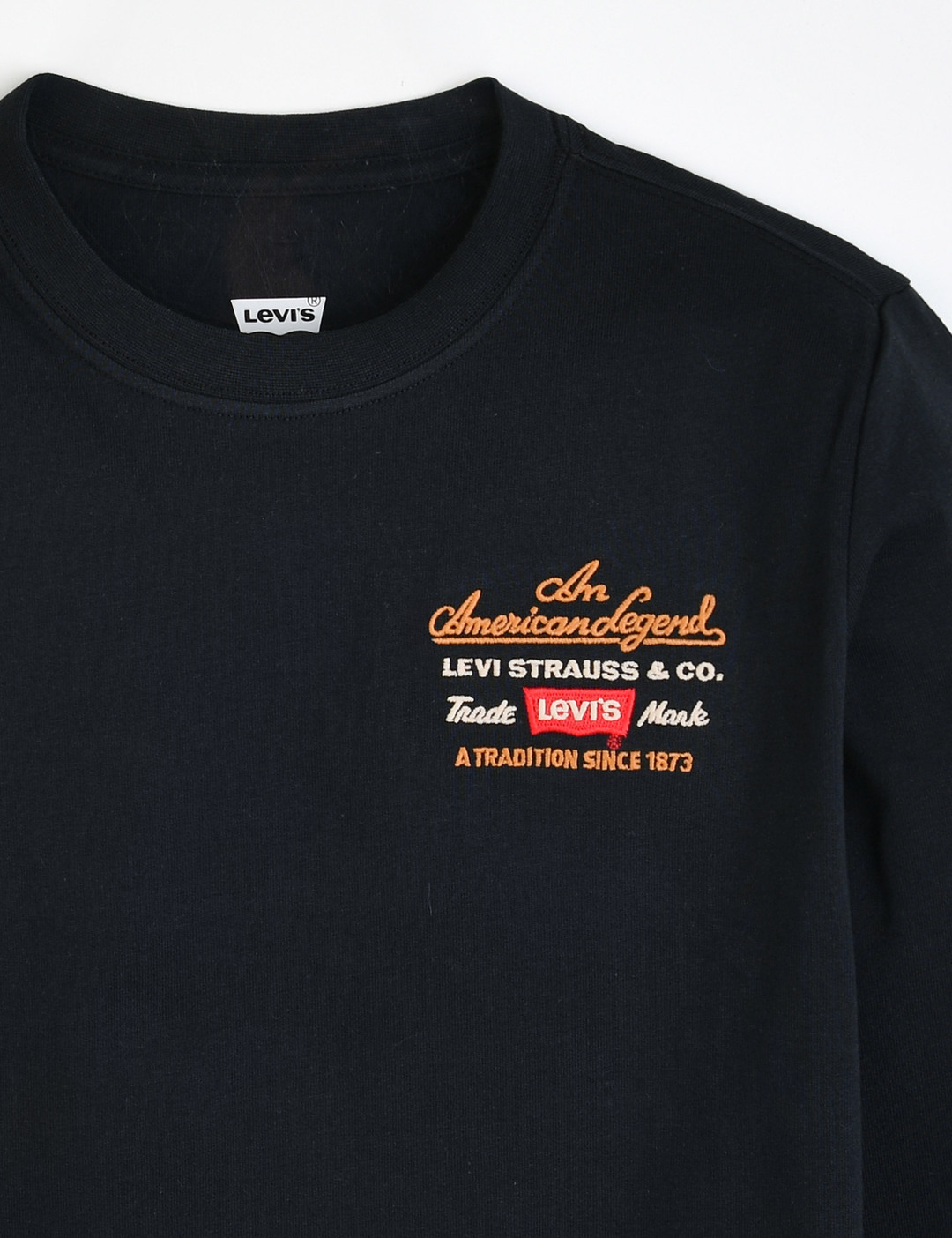 왼쪽 가슴에 자수 레터링 포인트가 있는 모던핏 긴팔티셔츠.
