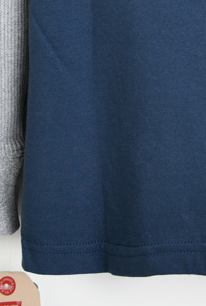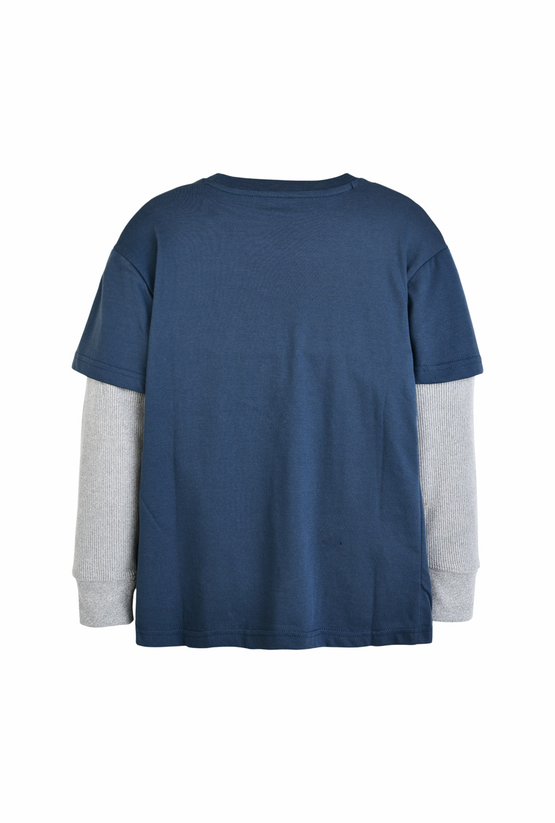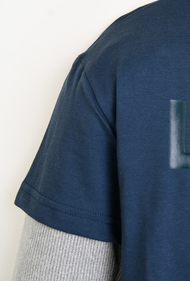 소매와 몸판은 상이한 소재를 사용해 레이어드연출이 가능한 릴렉스핏 긴팔티셔츠