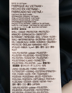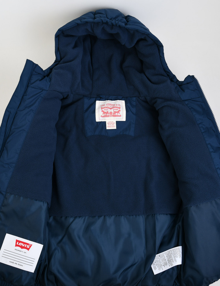 가로 퀼팅 디테일과 왼쪽 가슴 스몰 로고 포인트가 있는 스타일