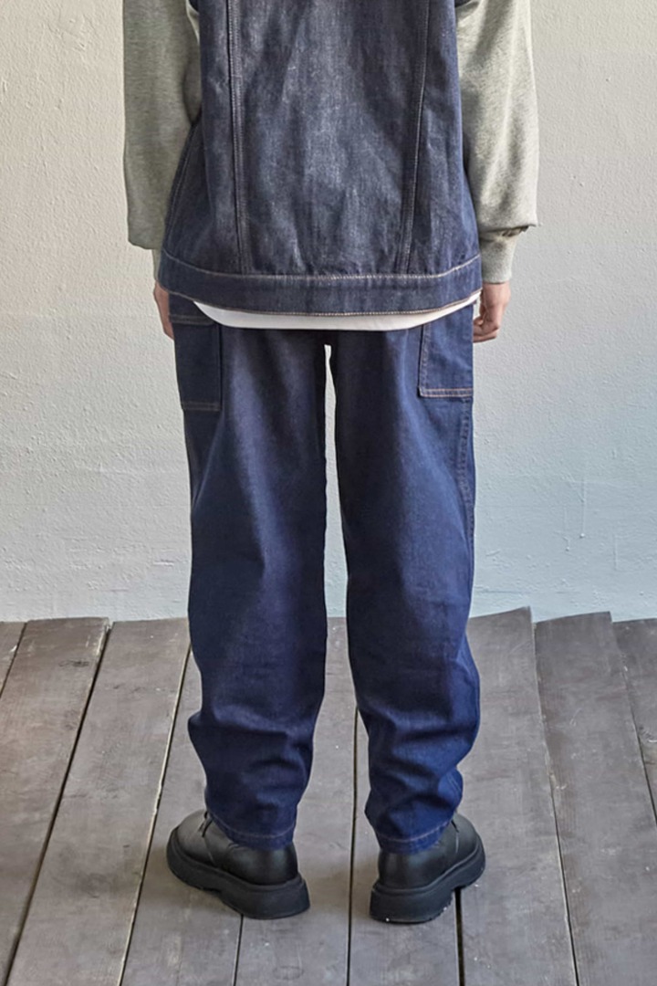 면혼방 스트레치 데님 리액티브 다잉 스트링 허리 카고 배기 대드 팬츠