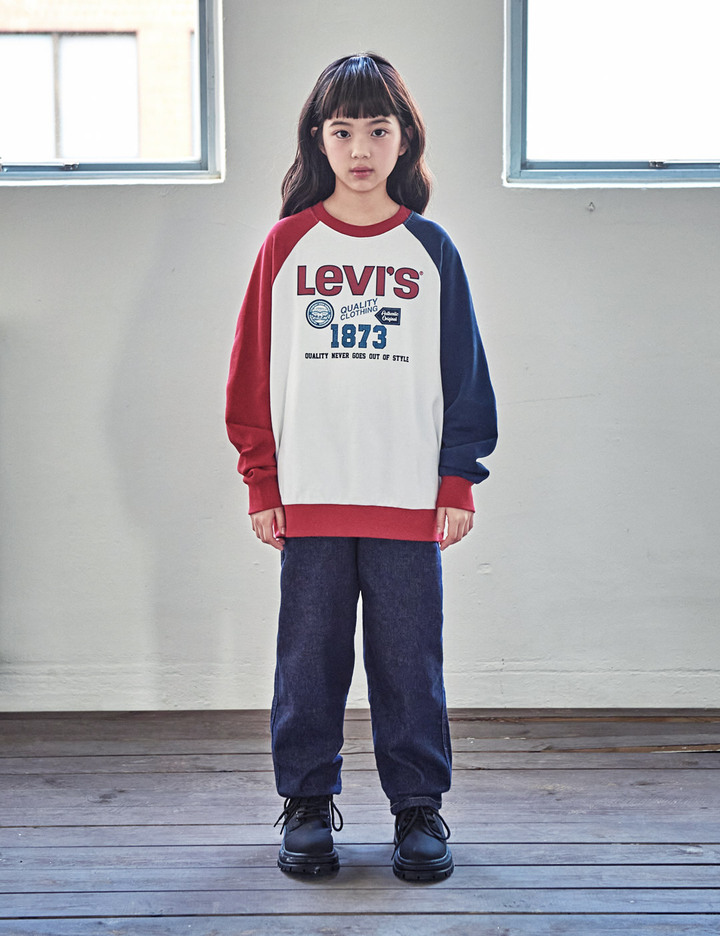 A. 리바이스키즈 주니어 맨투맨으로 면 백 퍼센트 프렌치테리 소재를 사용한 풀오버 스타일입니다