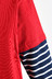 배색과 스트라이프를 더한 레이어드 디자인으로 코디 완성도 상승