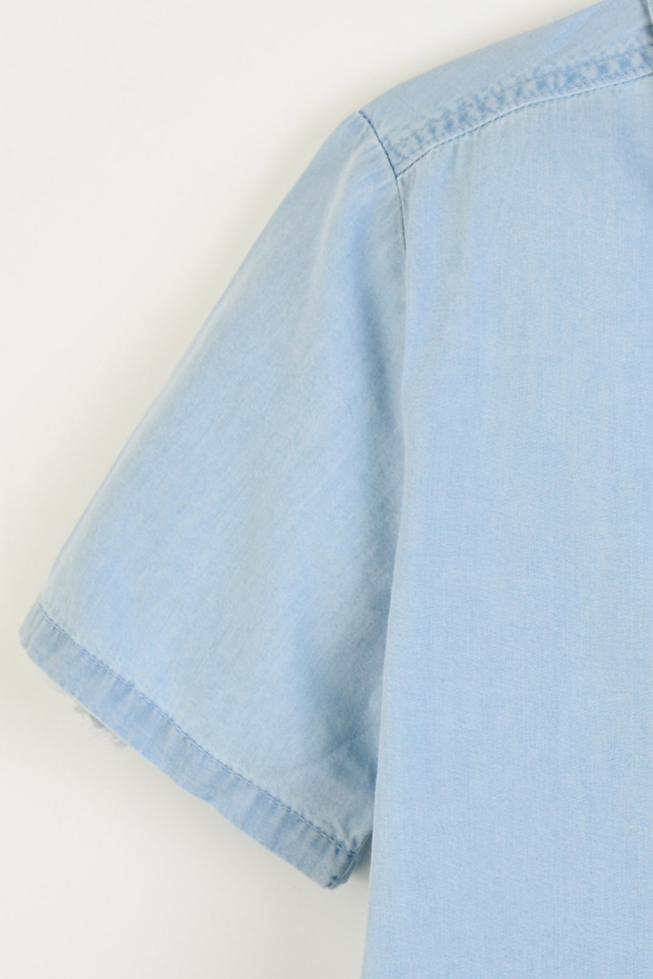가볍게 걸치기 좋은 레드탭 포인트 경량 데님 반팔셔츠