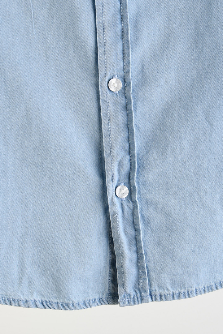 면 백퍼센트로 완성한 경량 데님 소재 가볍고 부드러운 터치로 산뜻하게 착용 가능 데님 특유의 캐주얼한 결을 깔끔하게 보여주는 원단 손세탁 권장