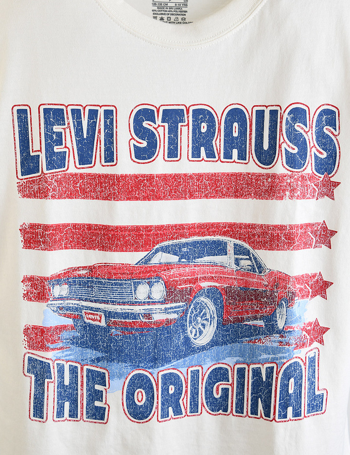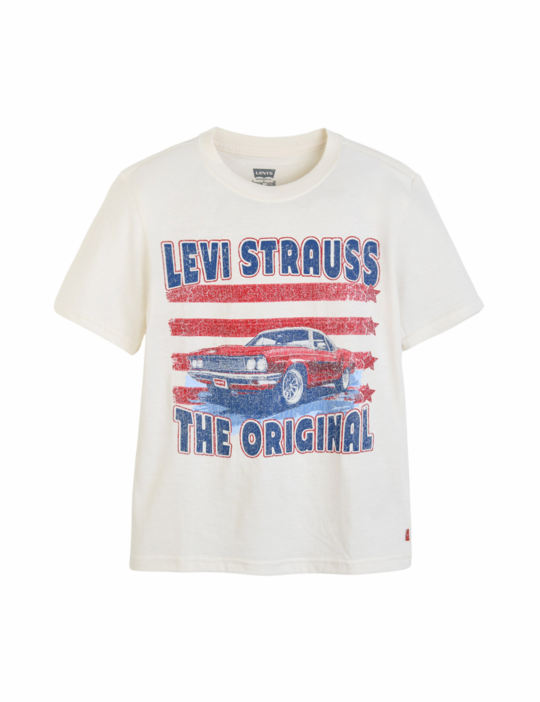친환경 BCI 코튼 혼방의 모던 핏 반팔 티셔츠로, 전면 올드카와 성조기 그래픽이 아메리칸 캐주얼 무드를 담았습니다. 리바이스 텍스트 로고가 디자인 포인트를 더합니다.