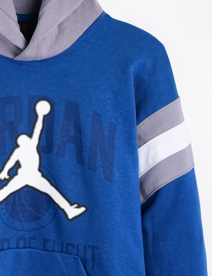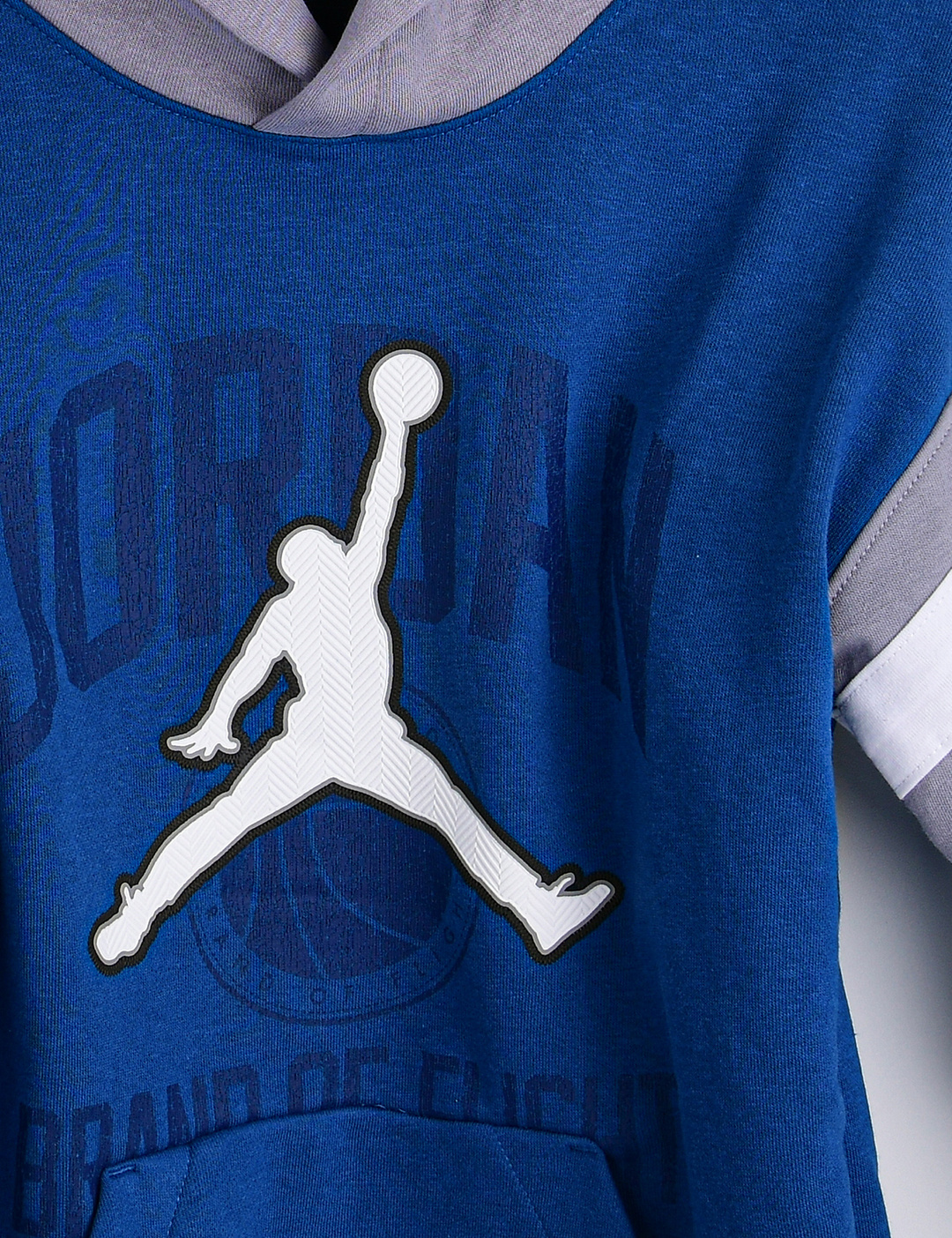 * 프렌치테리 소재의 후디* 점프맨 로고와 그래픽, 컬러 블록으로 디자인 포인트를 준 제품