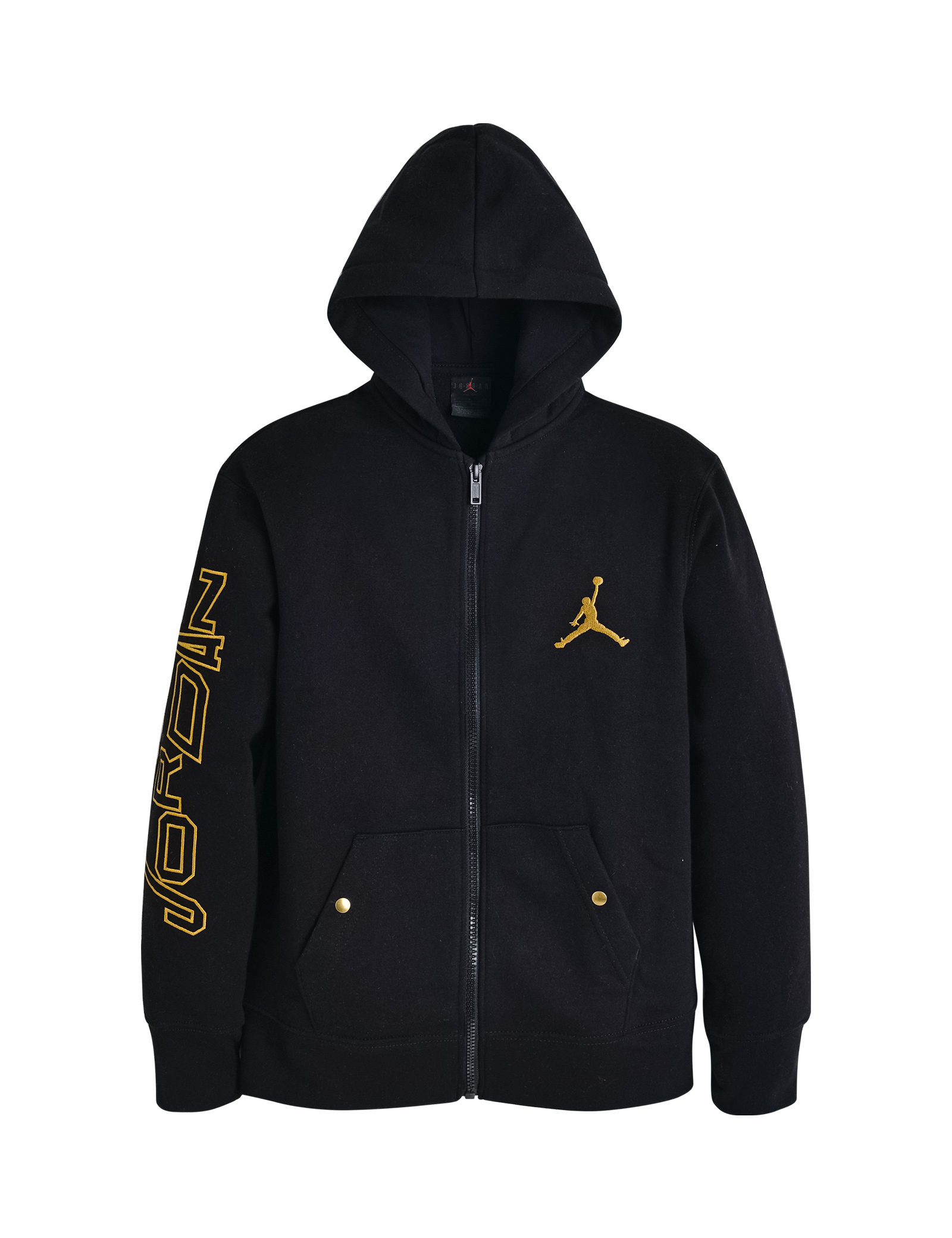 *플리스 소재의 풀집 후디*가슴 부분의 점프맨 로고와 소매 측면의 레터링으로 포인트를준 풀집업 후디