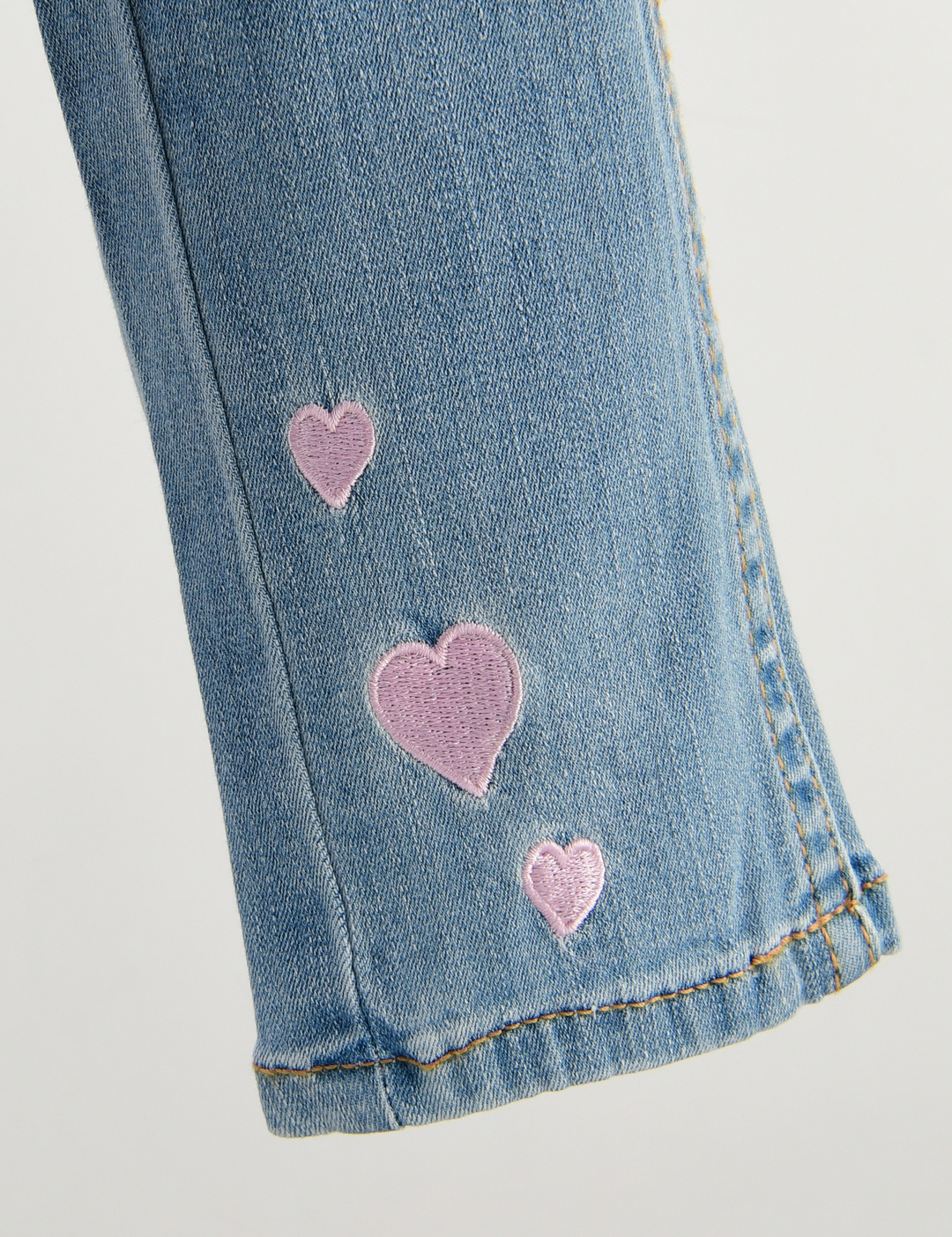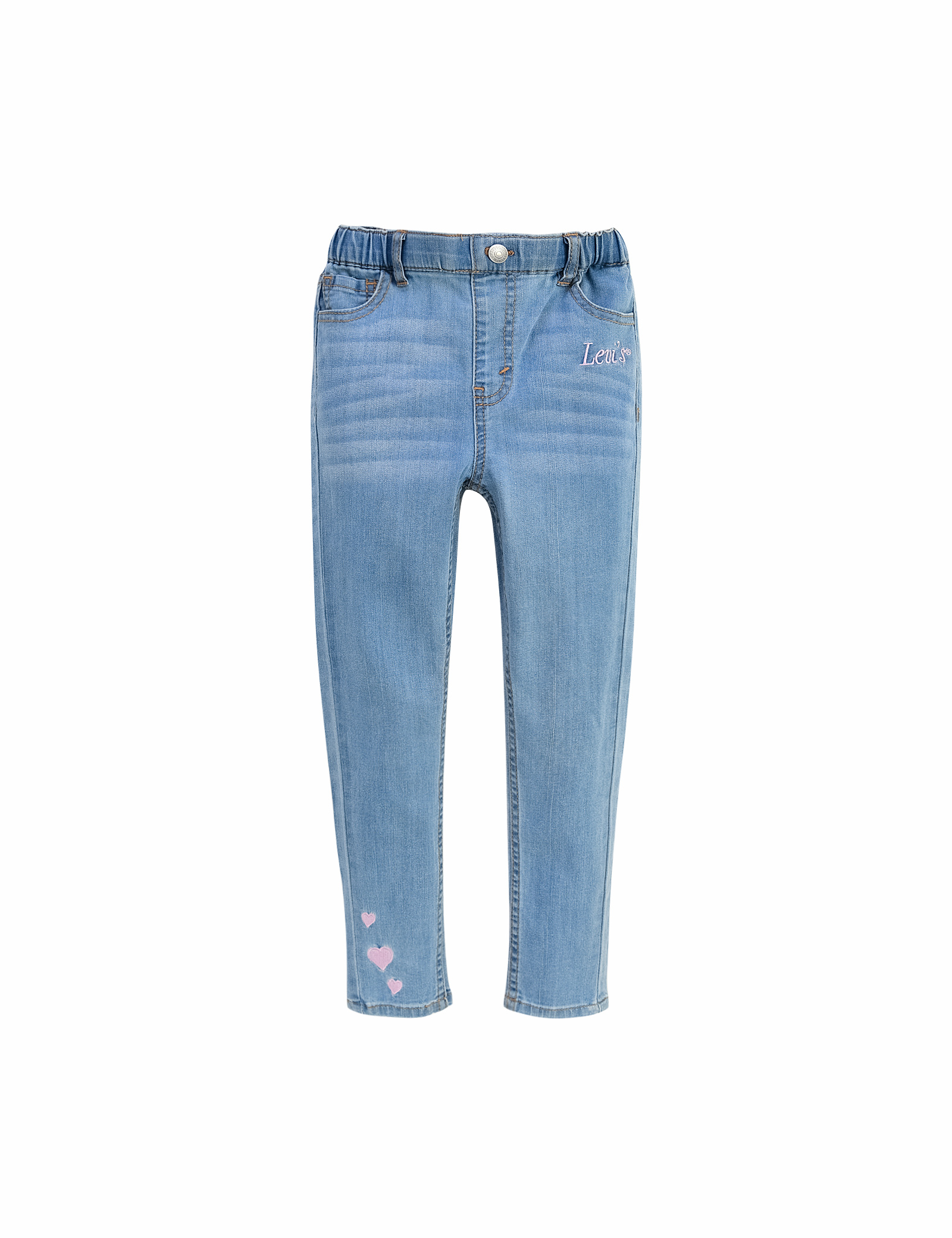 밑단의 하트 자수가 포인트인 허리밴딩의 슬림핏 제깅스