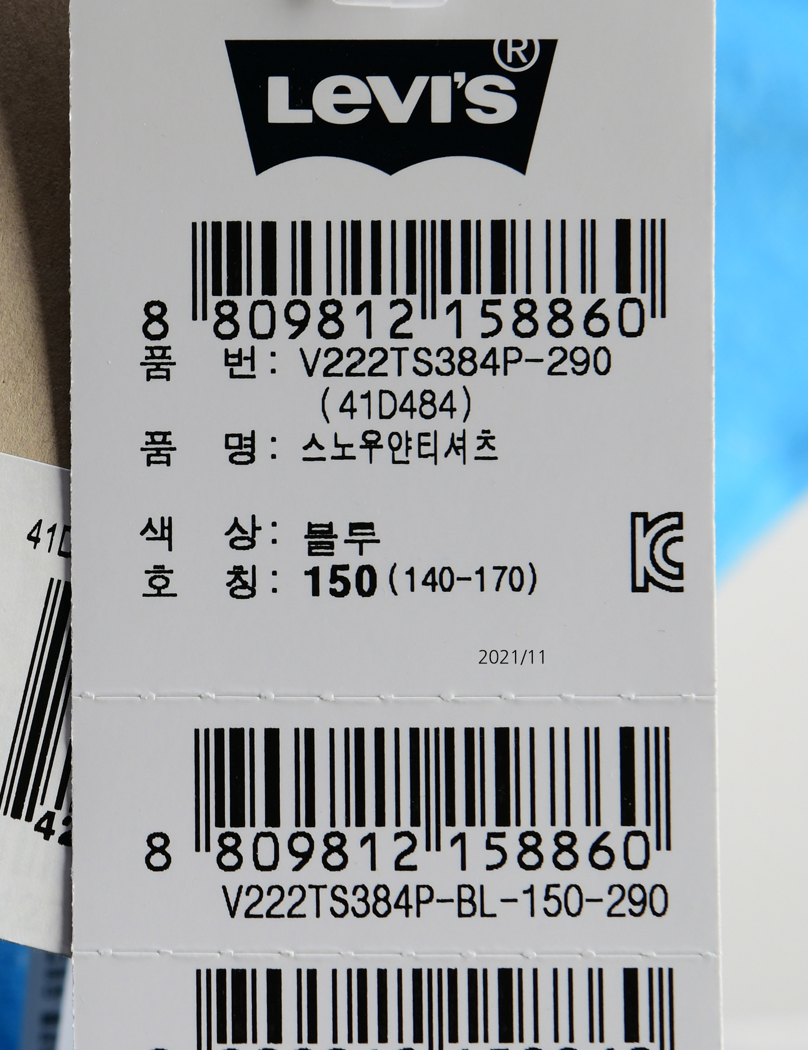 리바이스 로고가 들어가있으며, 허리 길이의 스노우얀 소재 반팔티셔츠