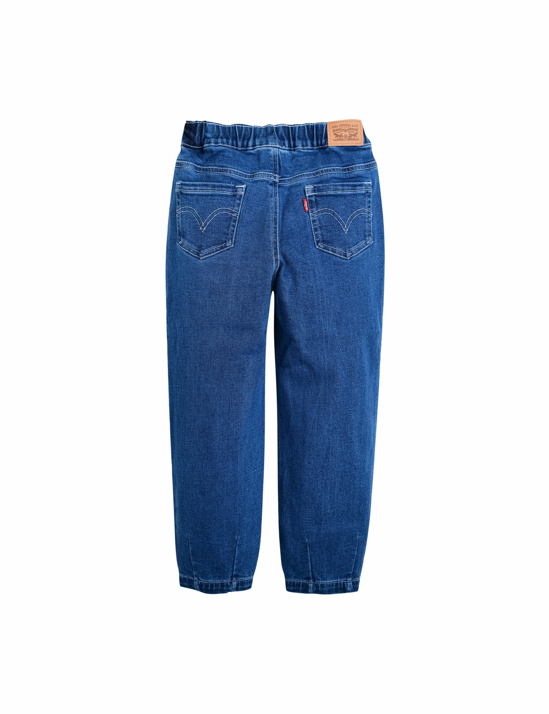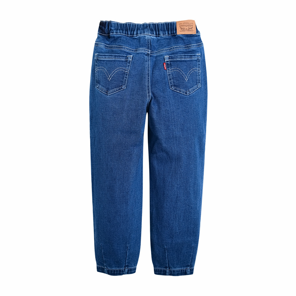 안감에 플리스 기모가 들어가 있어보온성을 높이고, 앞판에 다트가잡혀 여유있게 입을 수 있는 배기핏의 풀온 데님 팬츠