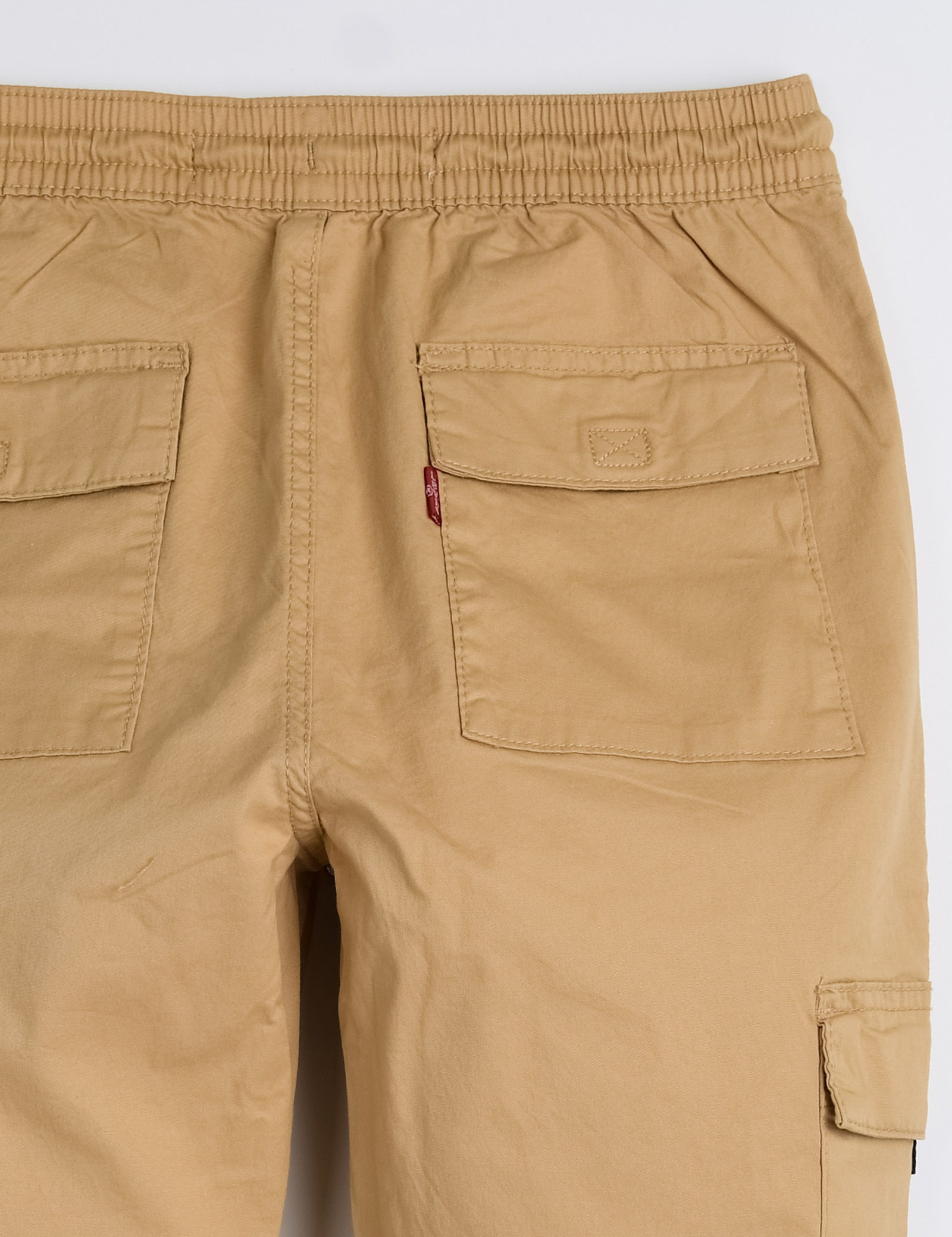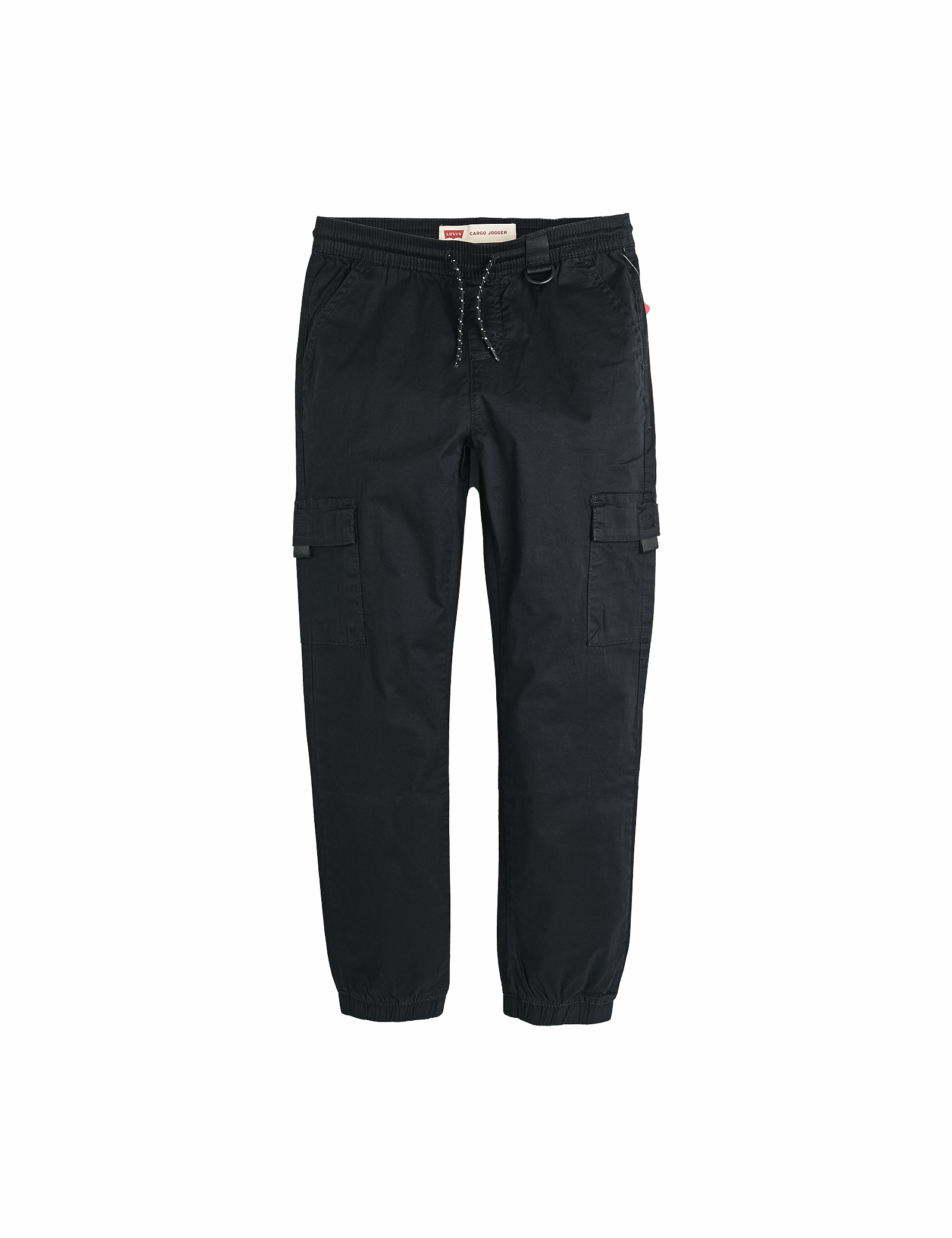 허리의 스트링으로 사이즈 조절이가능하며 양쪽의 카고 포켓과 허리의 고리로 유틸리티 디테일을살린 우븐 풀온 조거 팬츠