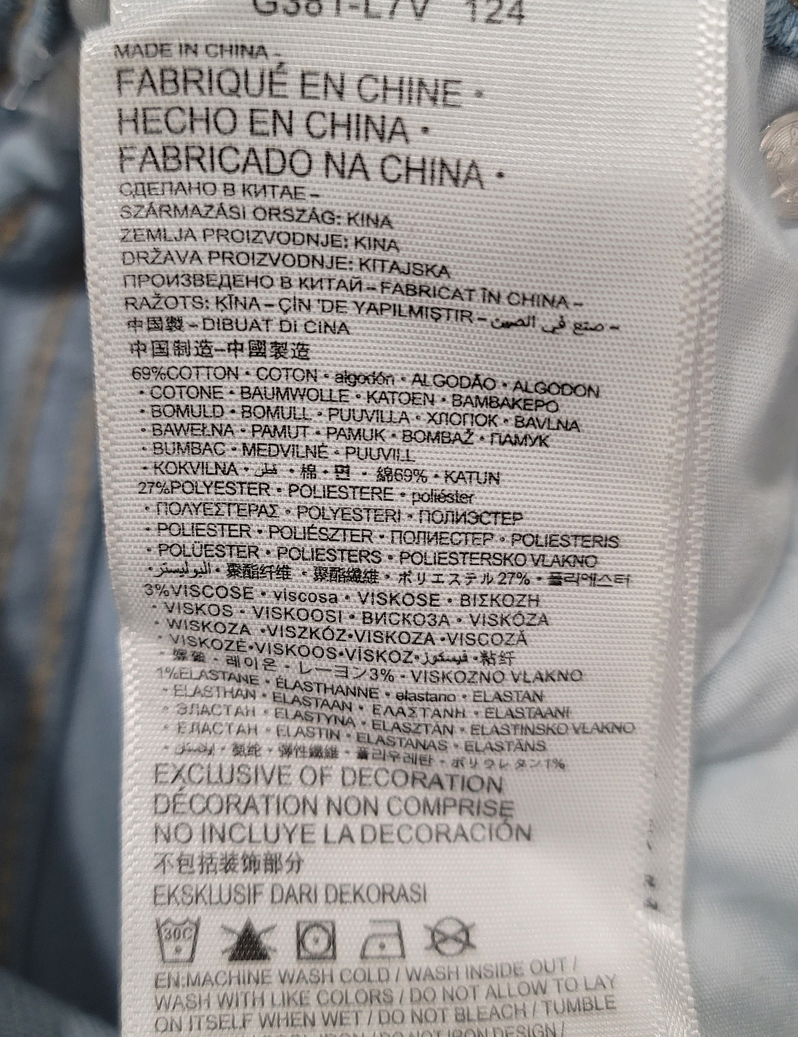 제품소재 (겉감)면69%,폴리에스터27%,레이온3%,폴리우레탄1%