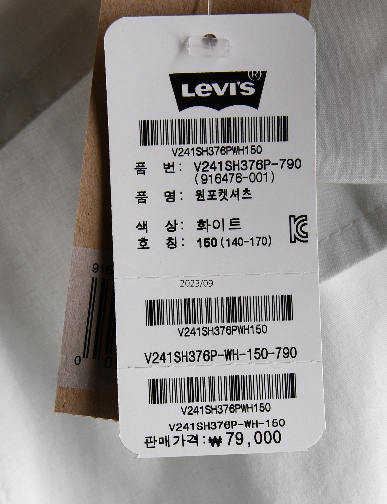 왼쪽 포켓에 리바이스 레드탭이 돋보이는 클래식한 화이트 셔츠입니다.