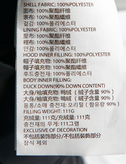 브랜드 홈 바로가기| 제품소재 | (겉감/안감/후드충전재)폴리에스터100%(몸통/소매 충전재)오리털(함유량90%) |