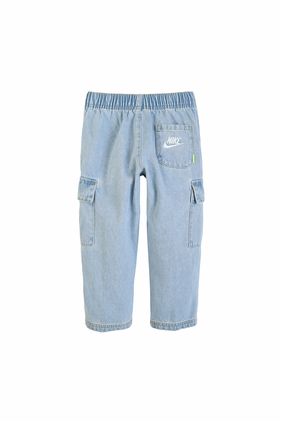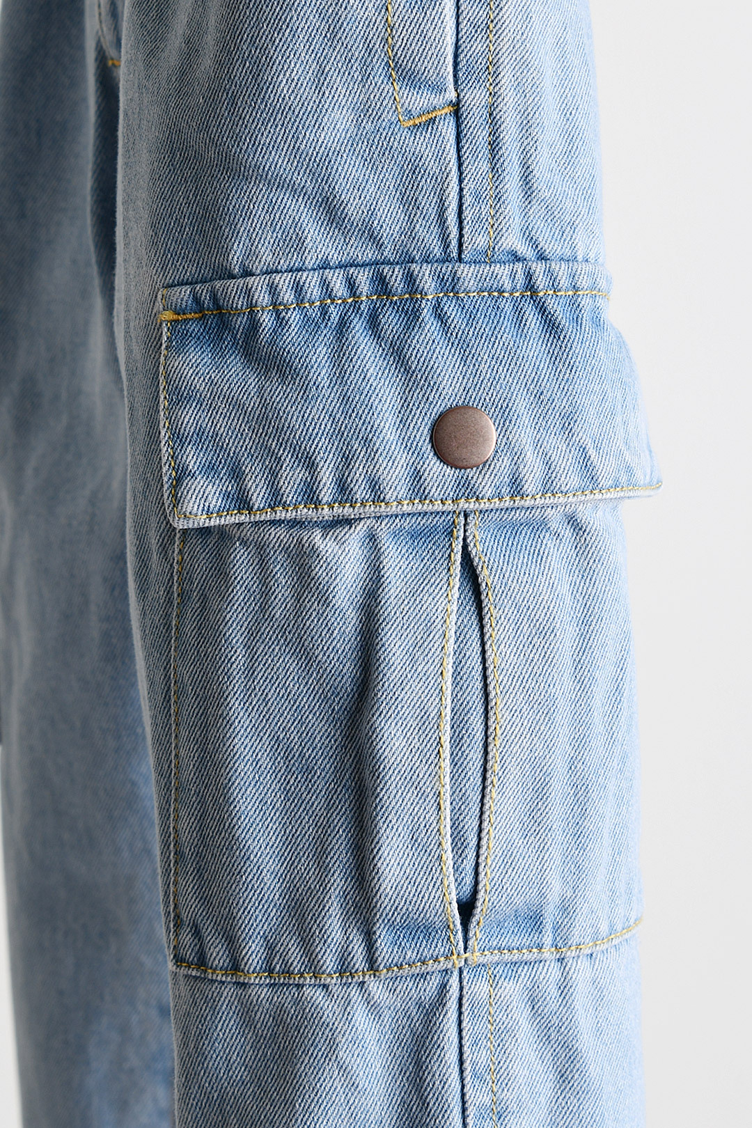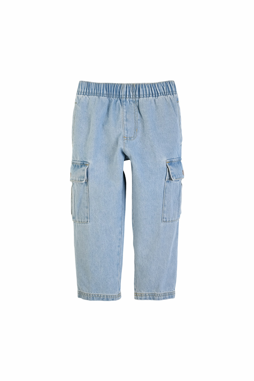 카고 디테일과 밴딩 허리를 더한 데님 팬츠