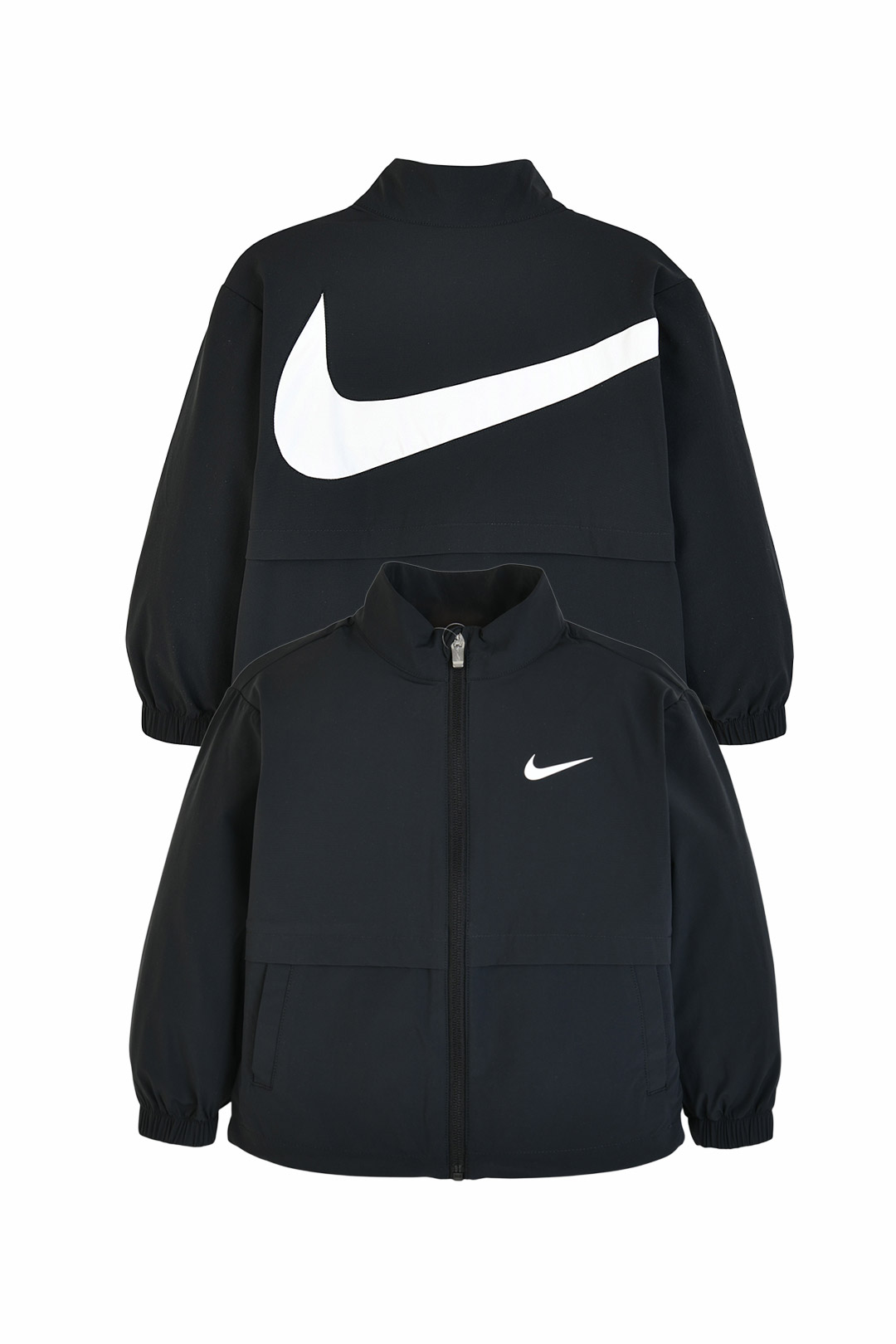 Q 어떤 디자인 포인트가 있나요 A 후면 빅 스우시와 가슴 로고가 또렷하게 포인트가 됨 Q 언제 입기 좋나요 A 간절기 외출이나 바람이 살짝 느껴지는 날 가볍게 걸치기 좋음 Q 어떤 이너와 잘 어울리나요 A 티셔츠 맨투맨 후디 위에 자연스럽게 매치 가능 Q 실루엣 조절이 가능한가요 A 밑단 조절 디테일이 있어 원하는 느낌으로 연출 가능 Q 핏은 어떤 느낌인가요 A 몸판과 소매에 여유가 있어 활동하기 편한 레귤러핏