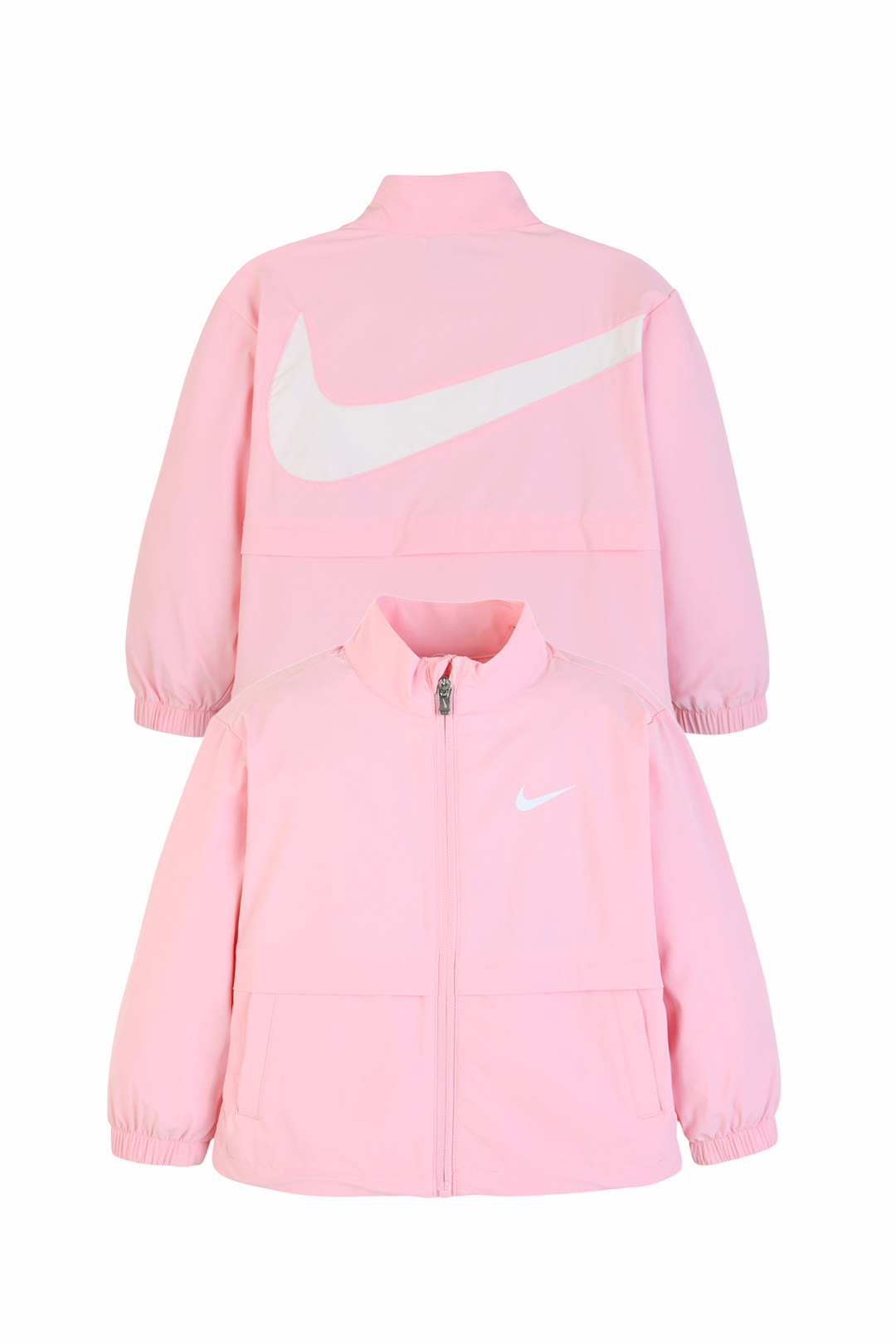 가볍게 걸치기 좋은 토들러 윈드러너 자켓 후면 빅 스우시와 가슴 로고가 선명한 포인트를 더함 전면 집업과 스탠드 칼라로 단정한 아웃핏 연출 소매 밴딩과 밑단 조절 디테일로 안정감 있게 착용 가능