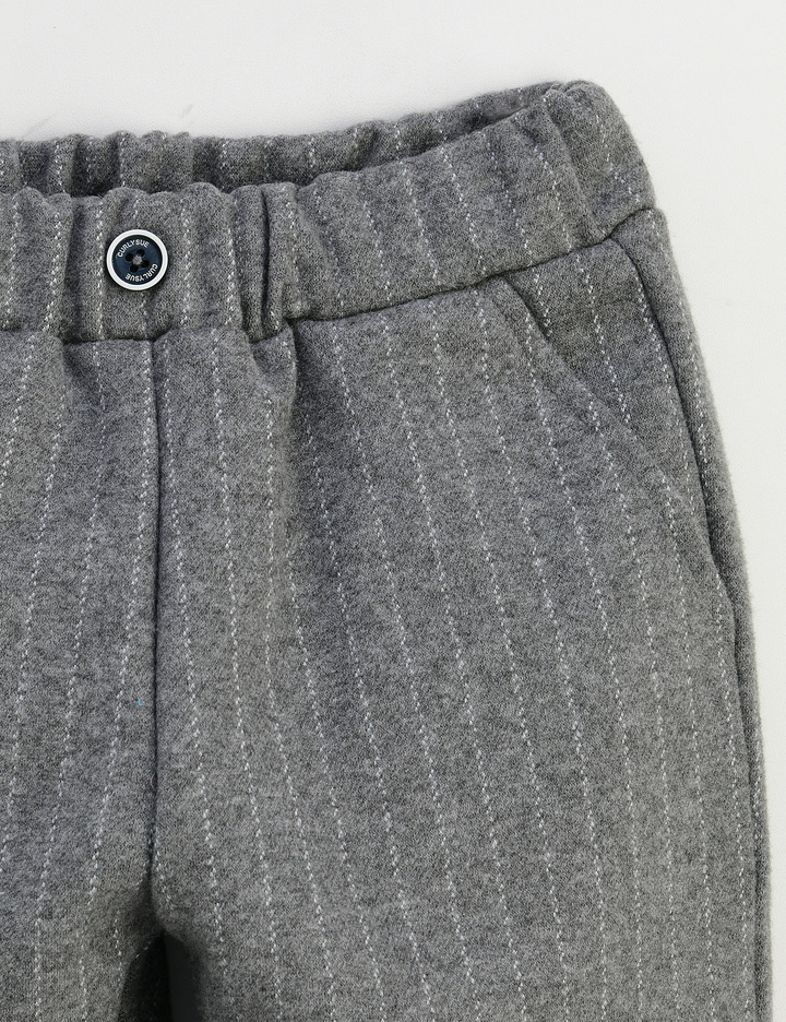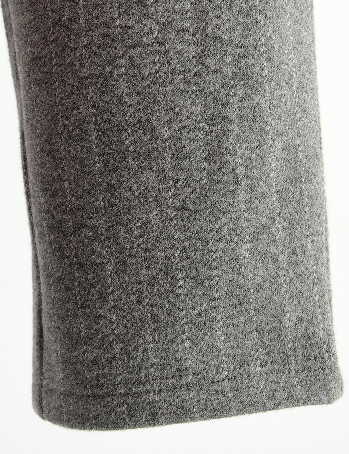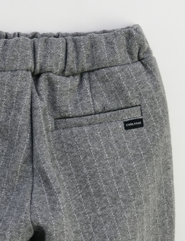 모던한 스트라이프 핀을 포인트로 한 자카드 속기모 팬츠입니다. 활동성 있는 다이마루 소재로 입었을 때 편안하고 속기모, 겉피치 작업을 하여 보온성까지 있으며 맨투맨과도 다양하게 연출이 가능합니다.