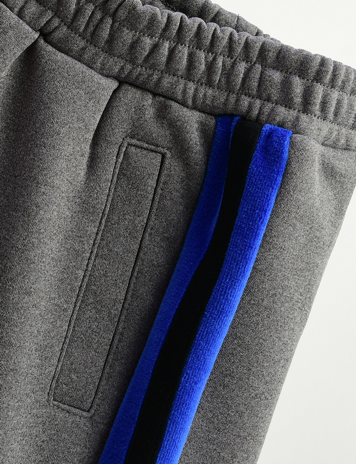 옆선에 배색 라이닝과 밑단의 넓은 시보리가 포인트인 트렌디한 져지 팬츠입니다. 쿠션감 있는 소재로 도톰하면서도 활동이 편하며 '애슬레져 레터링 쟈가드 맨투맨'과 컬러 맞춰 코디하면 세트 코디를 연출할 수 있습니다.