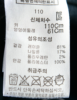 | 세탁방법 및 취급시 주의사항 | 본 세품은 손세탁 하십시오(케어라벨 참고) |