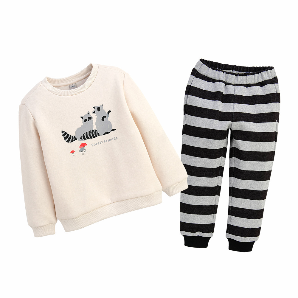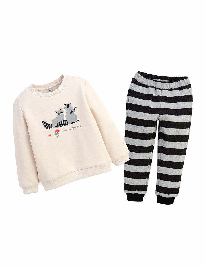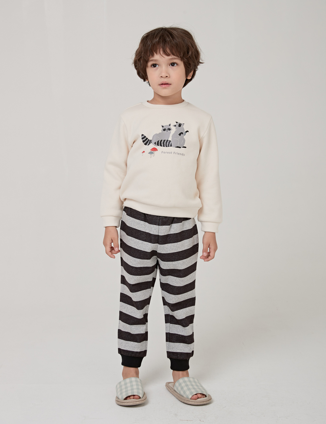 위트있는 동물이 포인트인 라운지 세트로 활동하기 편안하고 속기모 작업이 되어있어 보온성까지 겸비한 외출복으로도 가능한 실용도 높은 세트입니다.