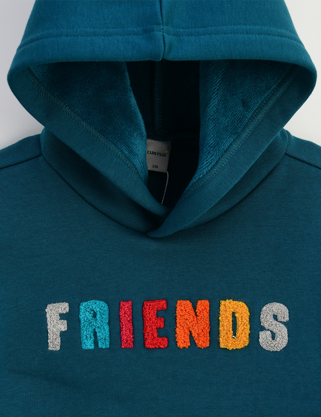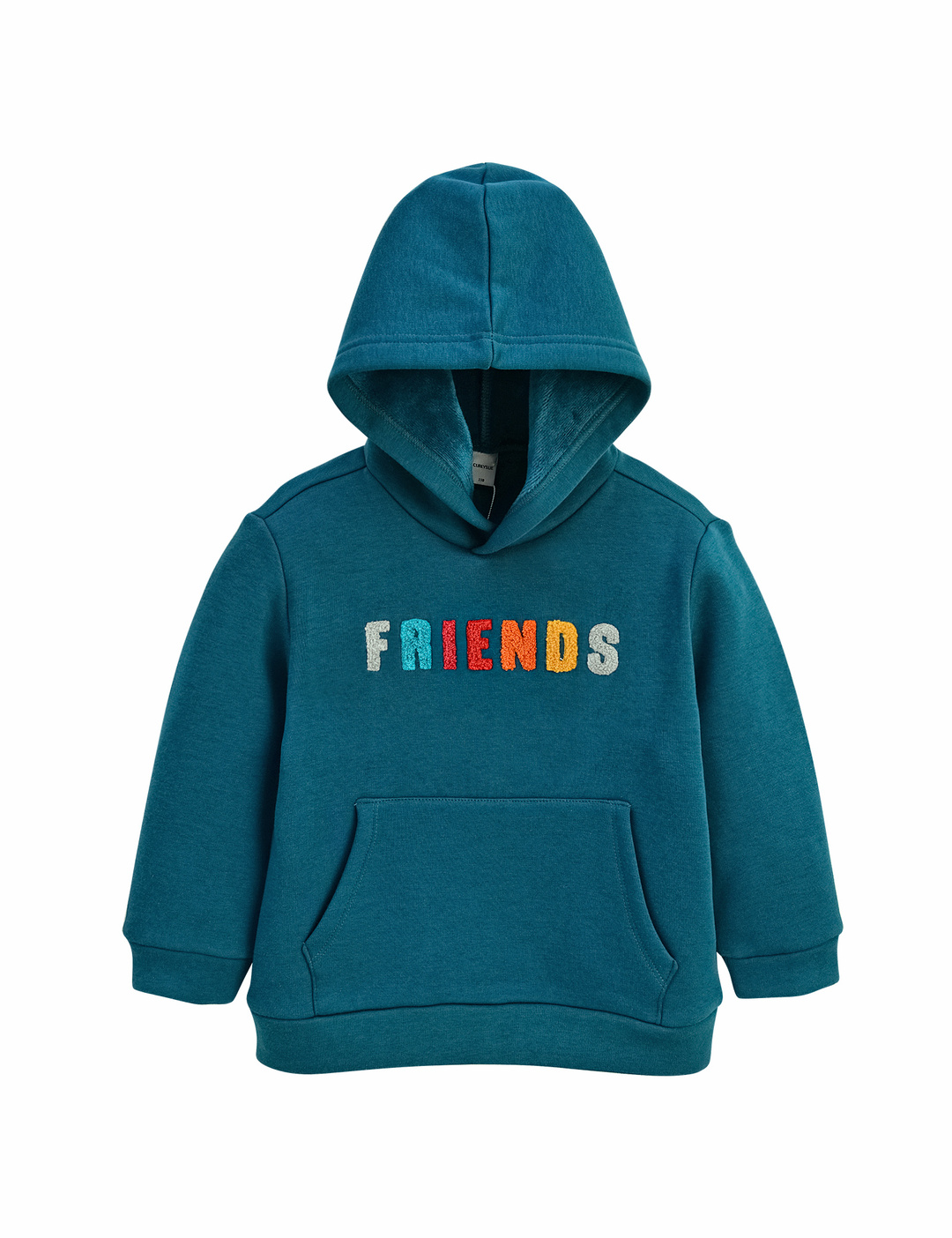 따뜻한 터치의 입체감이 있는 부클 레터링이 포인트인 후드 티셔츠입니다. 신축성 있으면서 보온성이 우수한 키모 스판 원단을 사용하여 겨울에 착용하기 좋은 상품입니다.