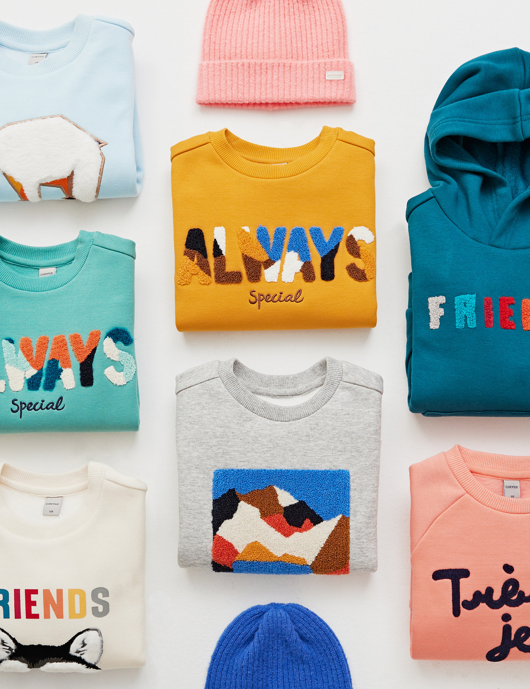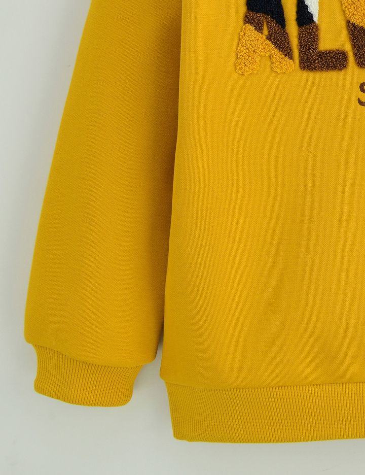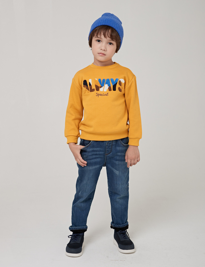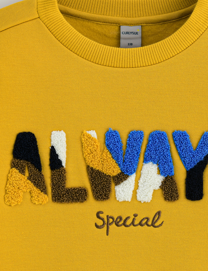 화사한 컬러감에 입체감 있는 고급스러운 느낌의 부클 레터링 아트웍이 포인트인 맨투맨 티셔츠입니다. 보온성이 우수한 기모 원단을 사용하여 한겨울에도 따뜻하게 입을 수 있는 상품입니다.