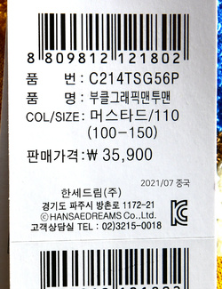 | 제조연월 | 202107 |