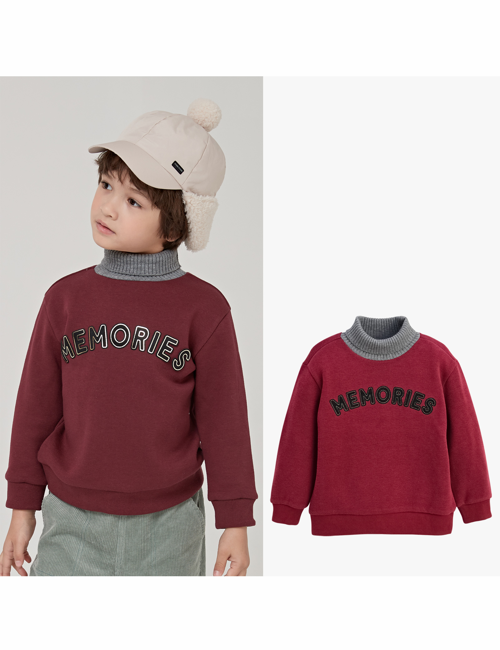 조직감 있는 사카리바 원단에 포근한 느낌을 주는 피치 가공을 사용한 반목 맨투맨입니다. 넥 부분에 그레이 시보리를 사용하여 모던한 느낌을 더했습니다. 시보리를 접으면 반목으로 펼치면 폴라티로 활용 가능합니다.