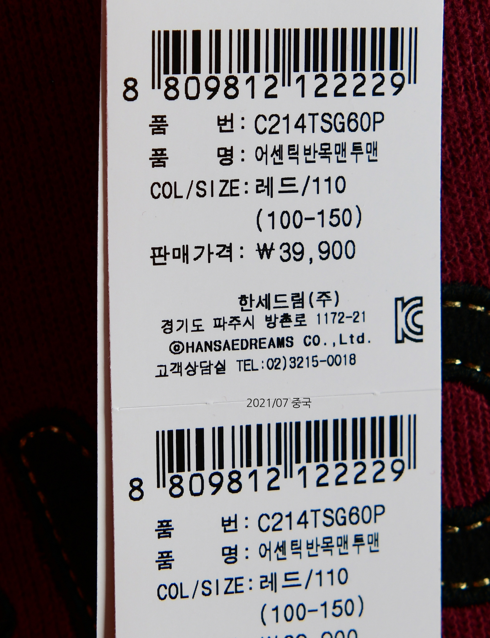 | 제조연월 | 202107 |