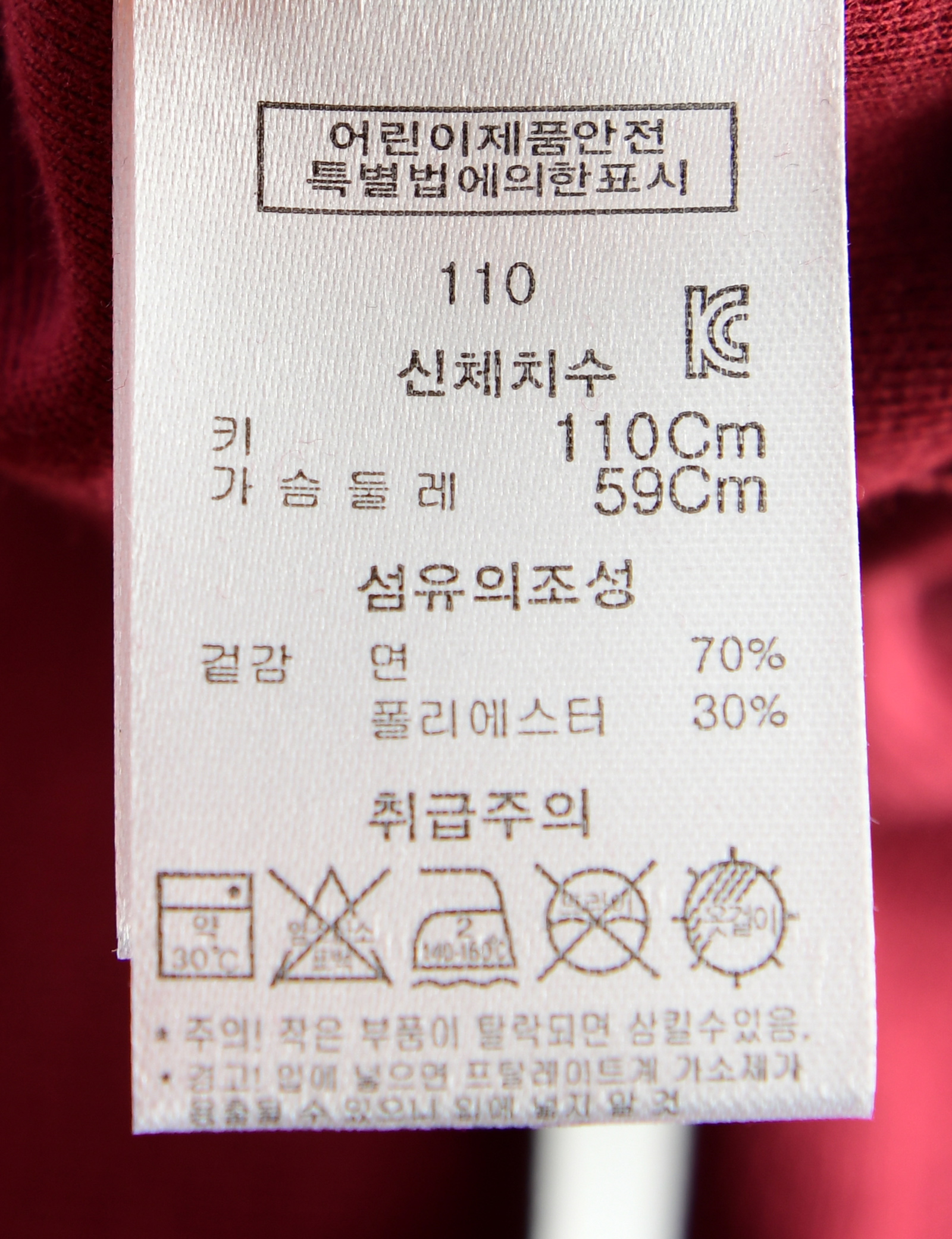 | 세탁방법 및 취급시 주의사항 | 본 세품은 손세탁 하십시오(케어라벨 참고) |