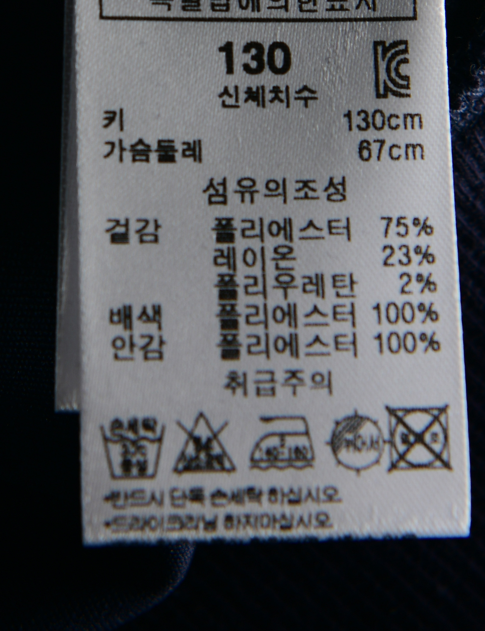 | 세탁방법 및 취급시 주의사항 | 본 세품은 손세탁 하십시오(케어라벨 참고) |
