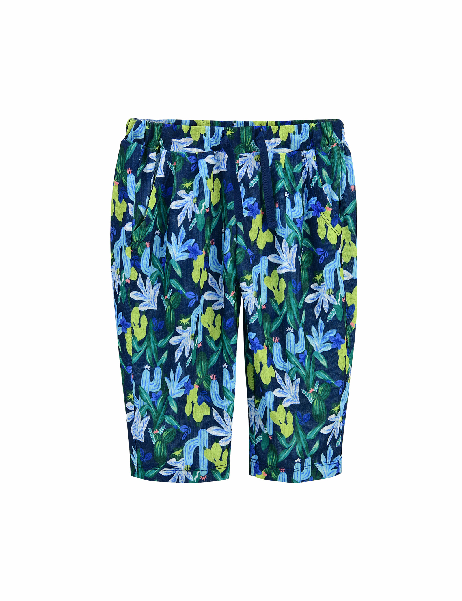 GN 컬러는 시원한 냉감 소재에 고급스러운 썸머 나염지 사용과 NA 컬러는 시원한 냉감 소재의 6부 팬츠입니다. 장식 스트링으로 디자인 포인트를 주었으며 한여름에도 착용하기에 좋은 편안한 실루엣의디자인입니다.