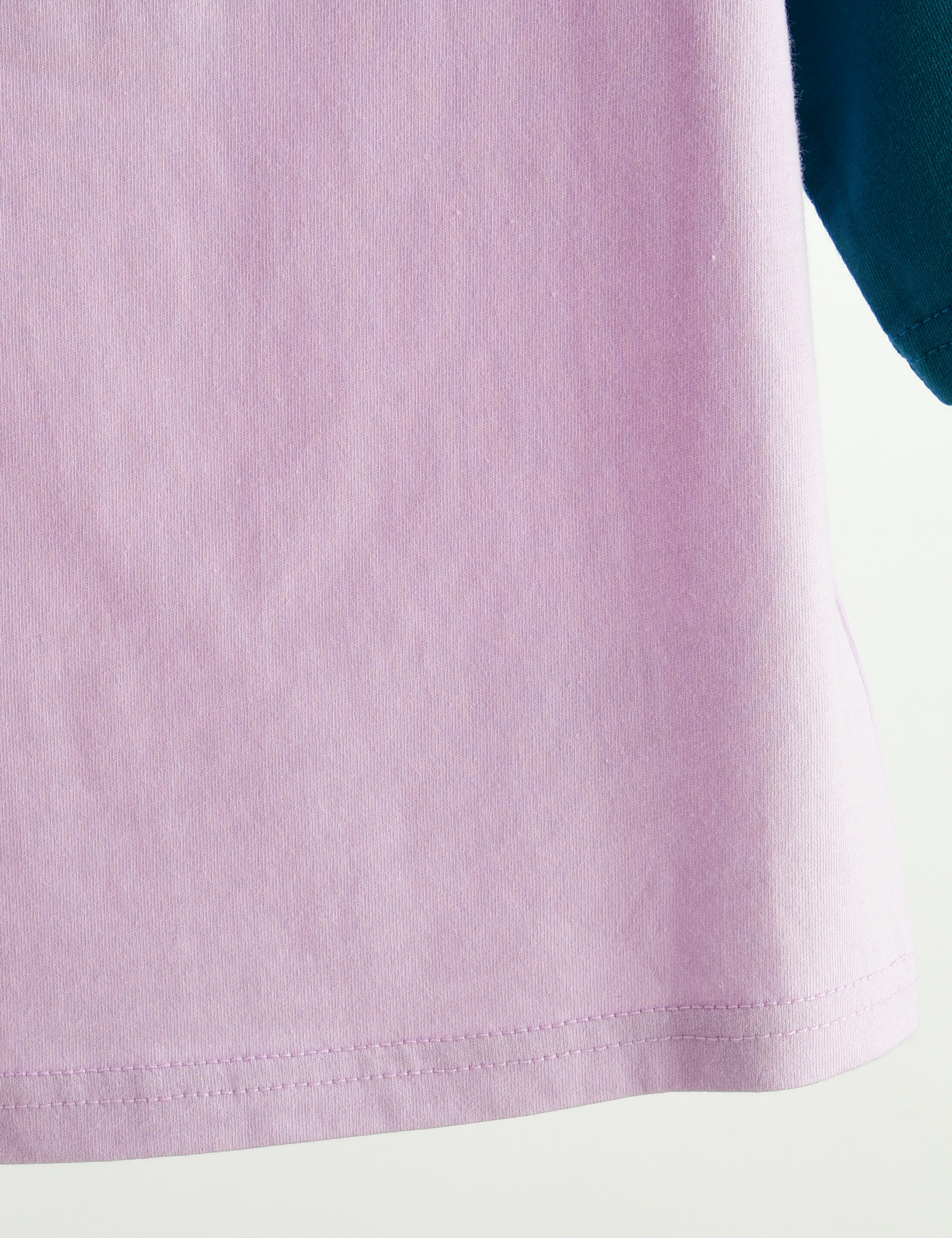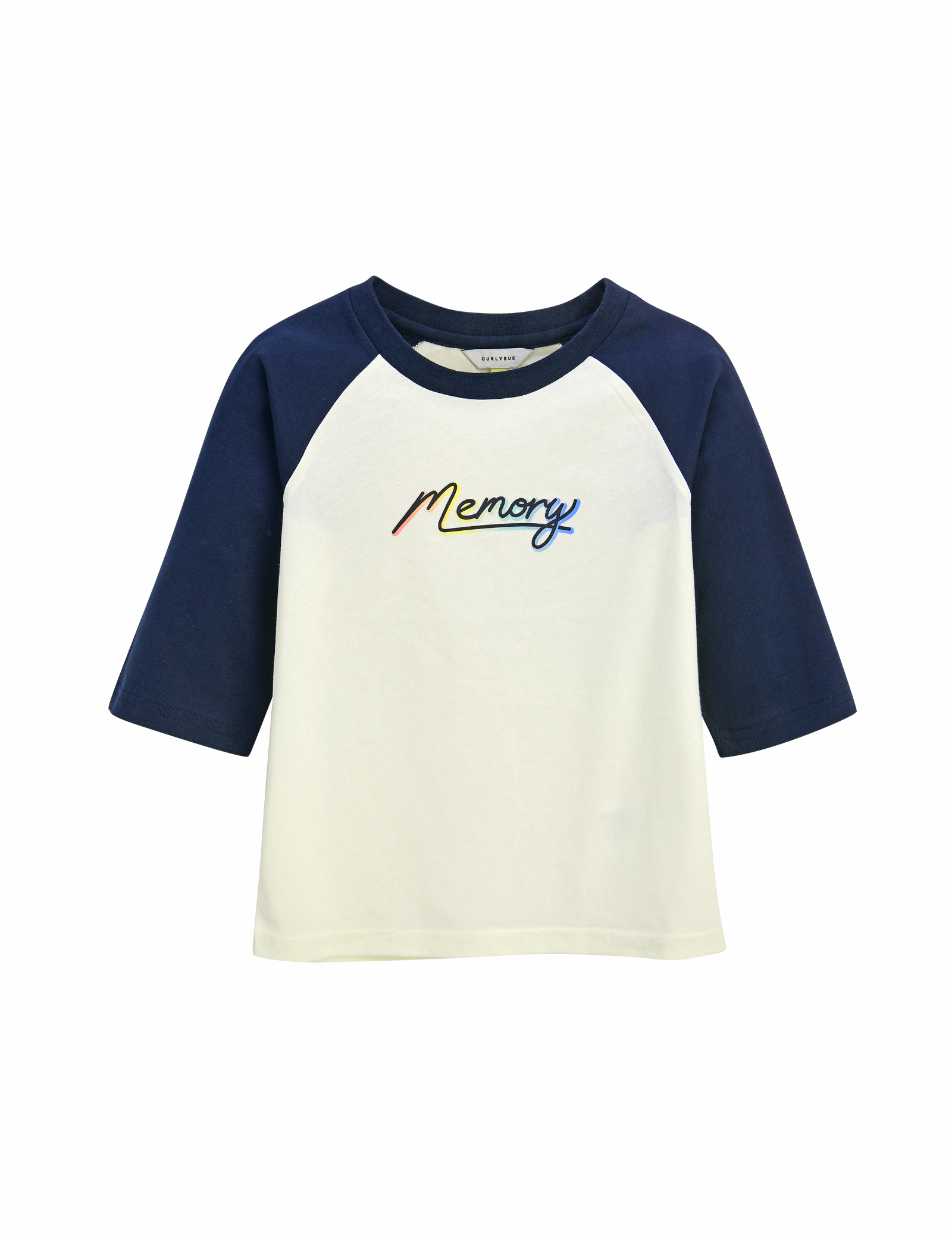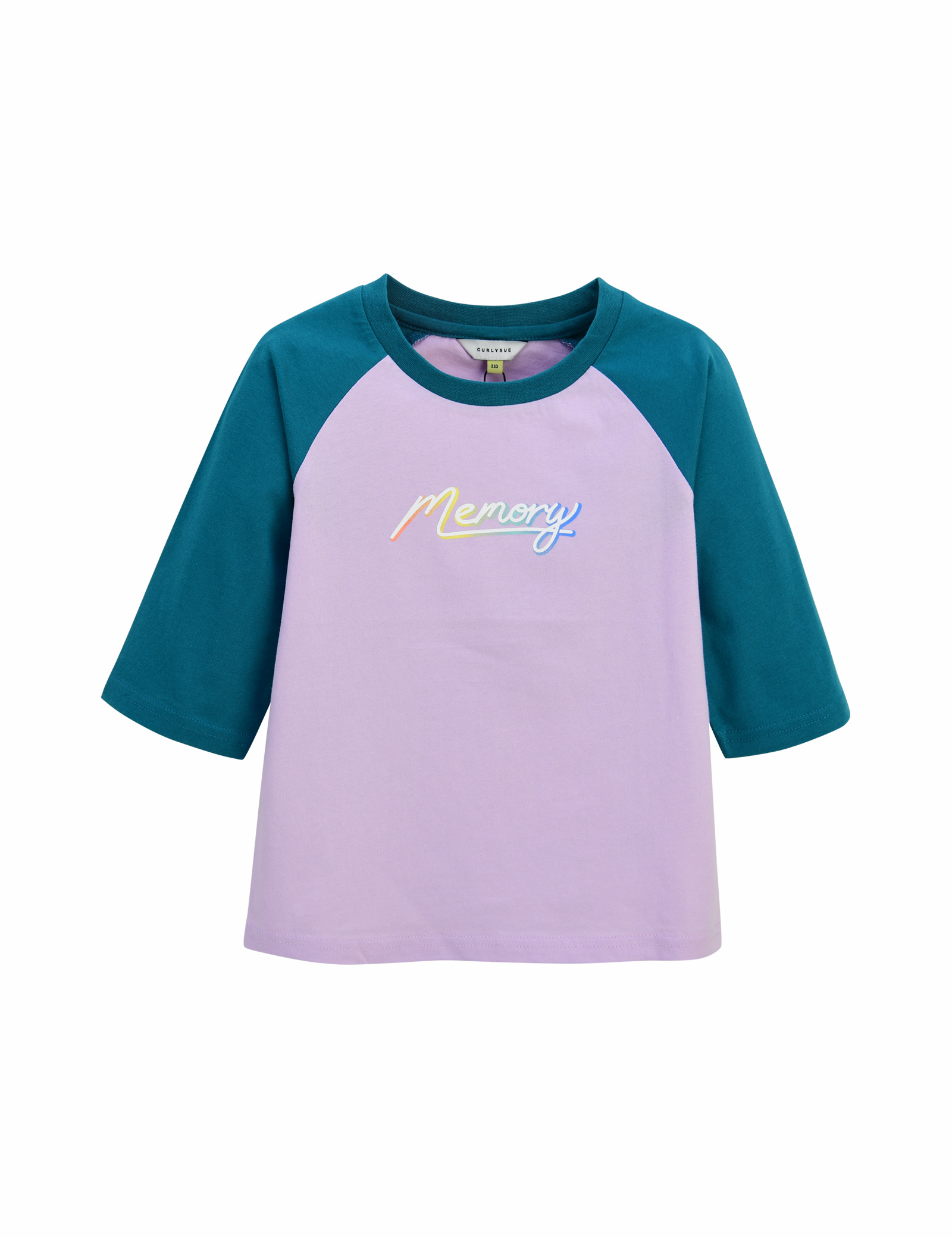컬러 콤비네이션이 돋보이는 7부 라글란 티셔츠입니다. 컬러감 있는 그라데이션 레터링 그래픽으로 포인트를 주었으며 7부 기장감으로 초여름부터 활용하기 좋은 베이직한 아이템입니다.