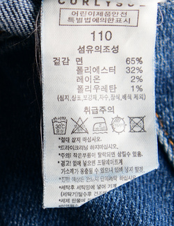 제품소재 (겉감)면65%,폴리에스터32%,레이온2%,폴리우레탄1%