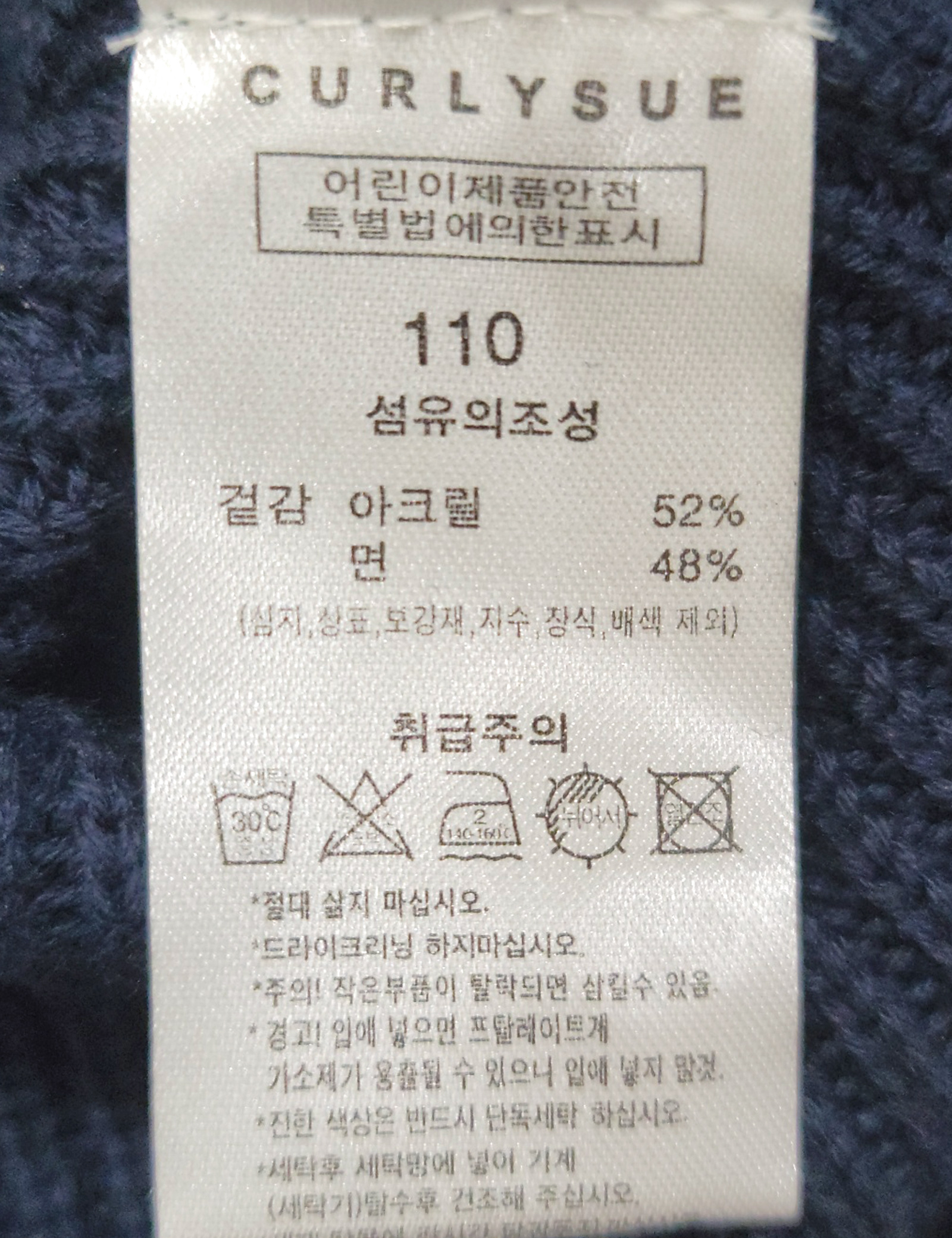 제품소재 (겉감)면48%,아크릴52%