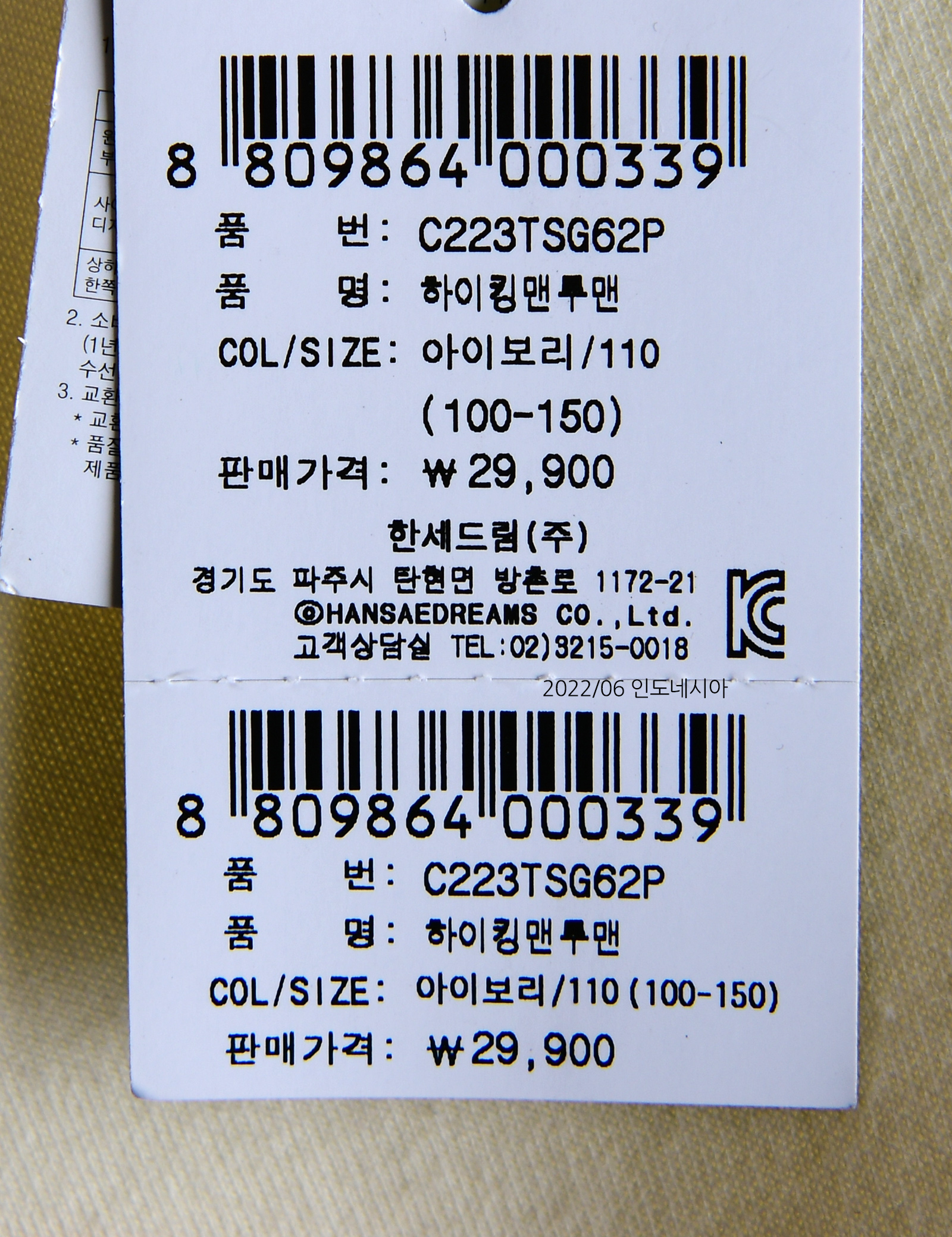 상품코드 C223TSG62P