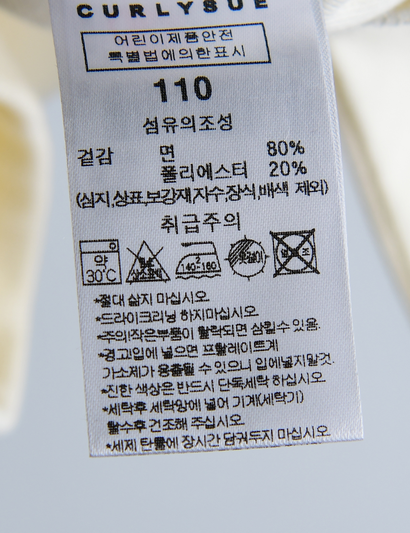 제품소재 (겉감)면80%,폴리에스터20%