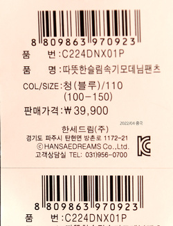 | 상품명 | [컬리수] 따뜻한슬림 속기모 데님팬츠 |
