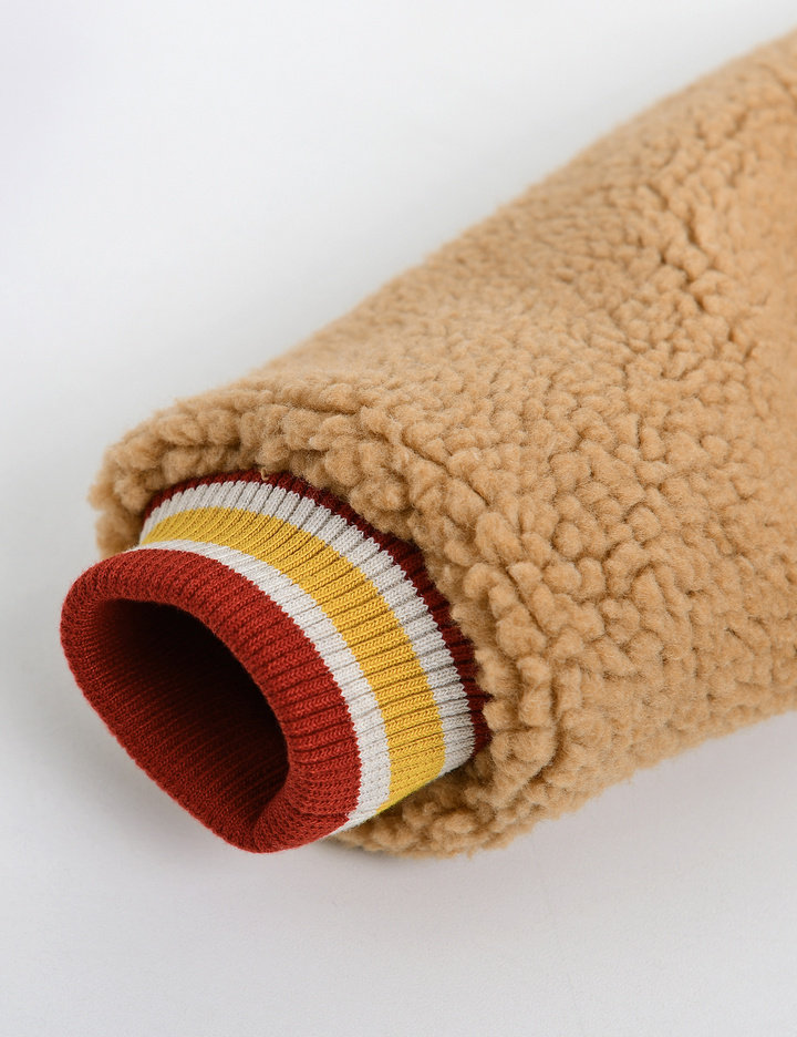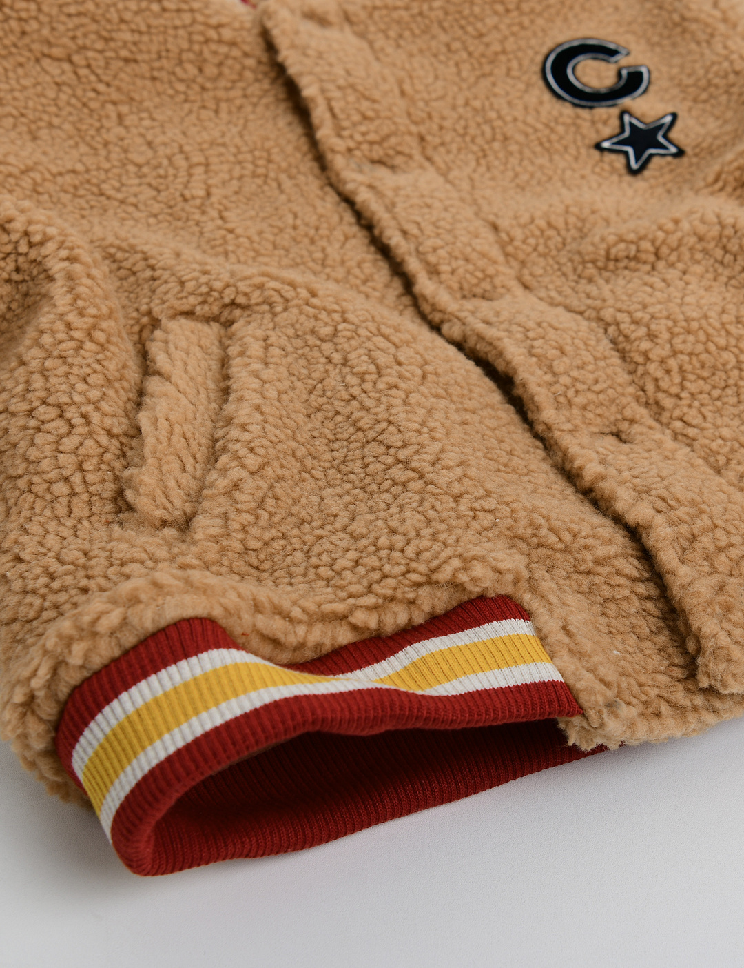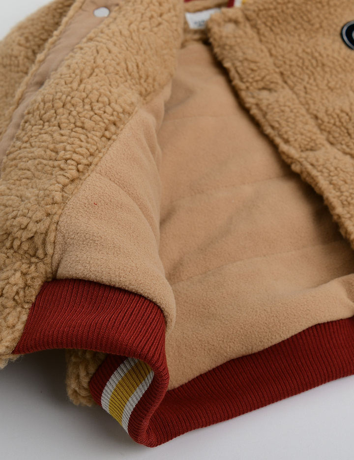 포근한 덤블소재에 폴라플리스와 패딩을 넣어 따뜻함을 더한 덤블 점퍼입니다. 소매와 밑단 시보리로 보온력에 좋습니다. 가슴의 와펜이 포인트로 들어가 있습니다.