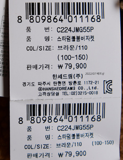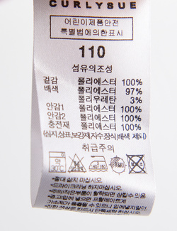 제품소재 (겉감/안감1/안감2/충전재)폴리에스터100%(배색)폴리에스터97%,폴리우레탄3%