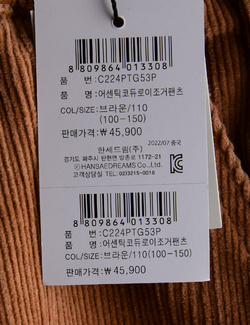 상품명 [컬리수] 어센틱코듀로이 조거팬츠