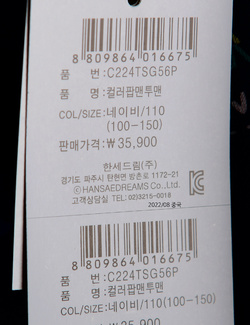 | 세탁방법 및 취급시 주의사항 | 본 세품은 손세탁 하십시오(케어라벨 참고) |