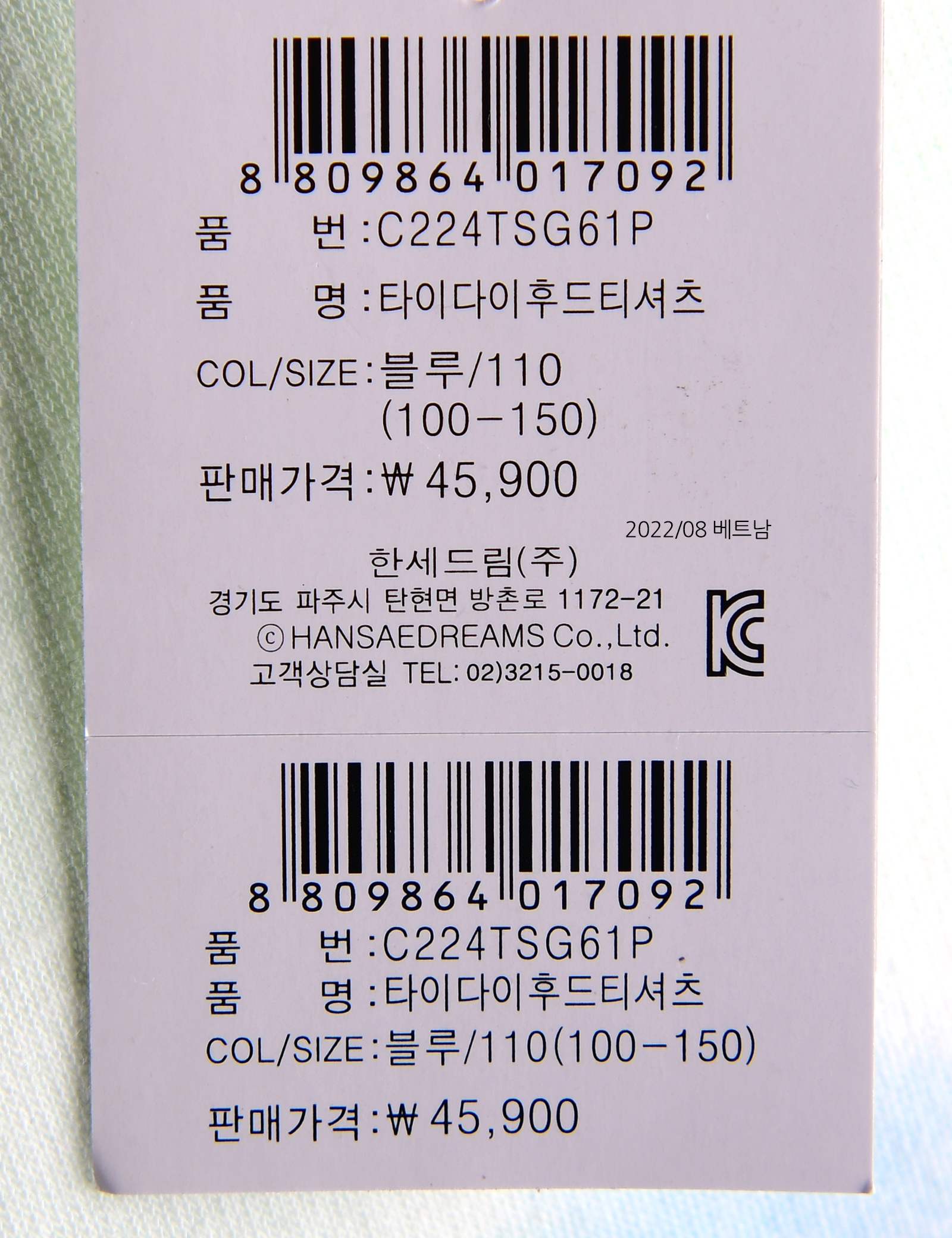 | 제조사 | 한세드림(주) |