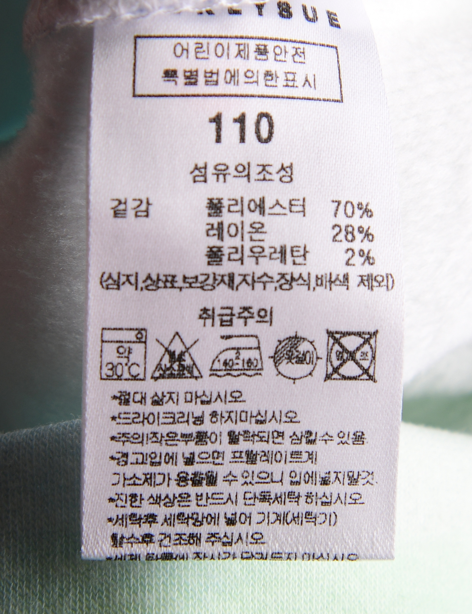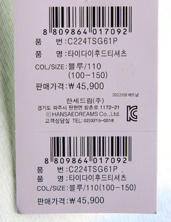 | 세탁방법 및 취급시 주의사항 | 본 세품은 손세탁 하십시오(케어라벨 참고) |